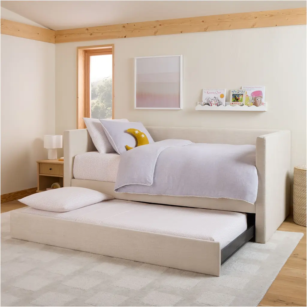 Ideal for kids rooms, playrooms and living rooms alike. The bottom trundle is great for sleepovers. It's GREENGUARD Gold Certified as being low VOC.