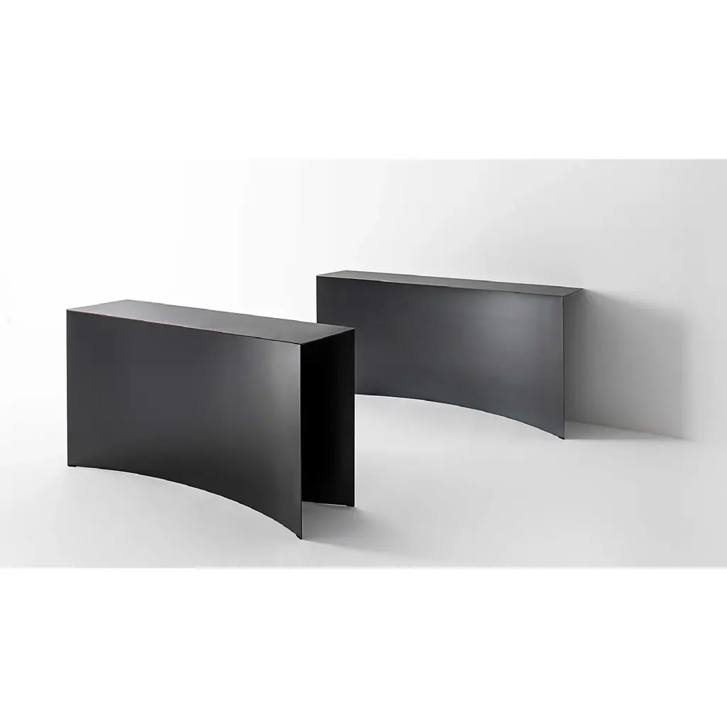 Enhance your space with the elegant and exclusive Desalto Void carved out free-standing console. This collection showcases the perfect balance between solid and void, creating a visual impact with its unique base design. Crafted with precision and subtlety, it is an embodiment of architectural concepts of mass and void, elevating your decor to a whole new level.
