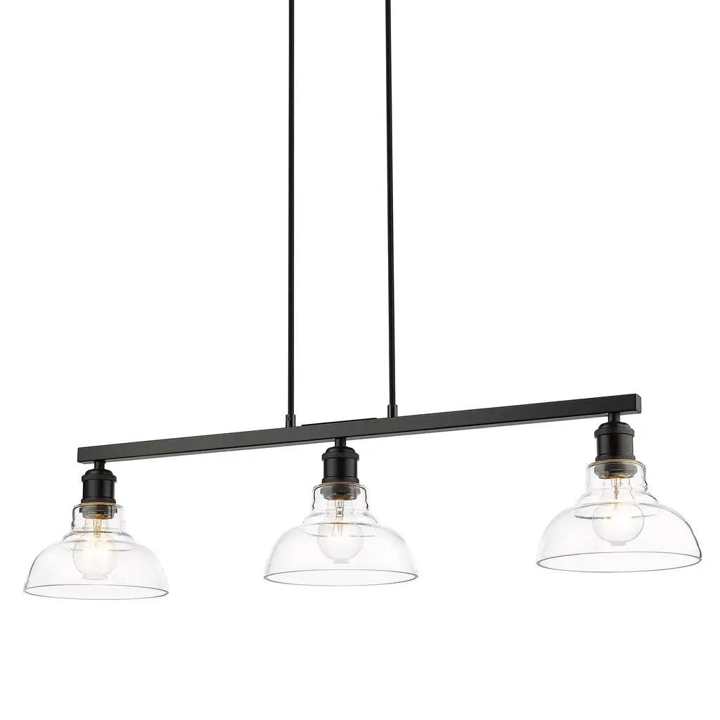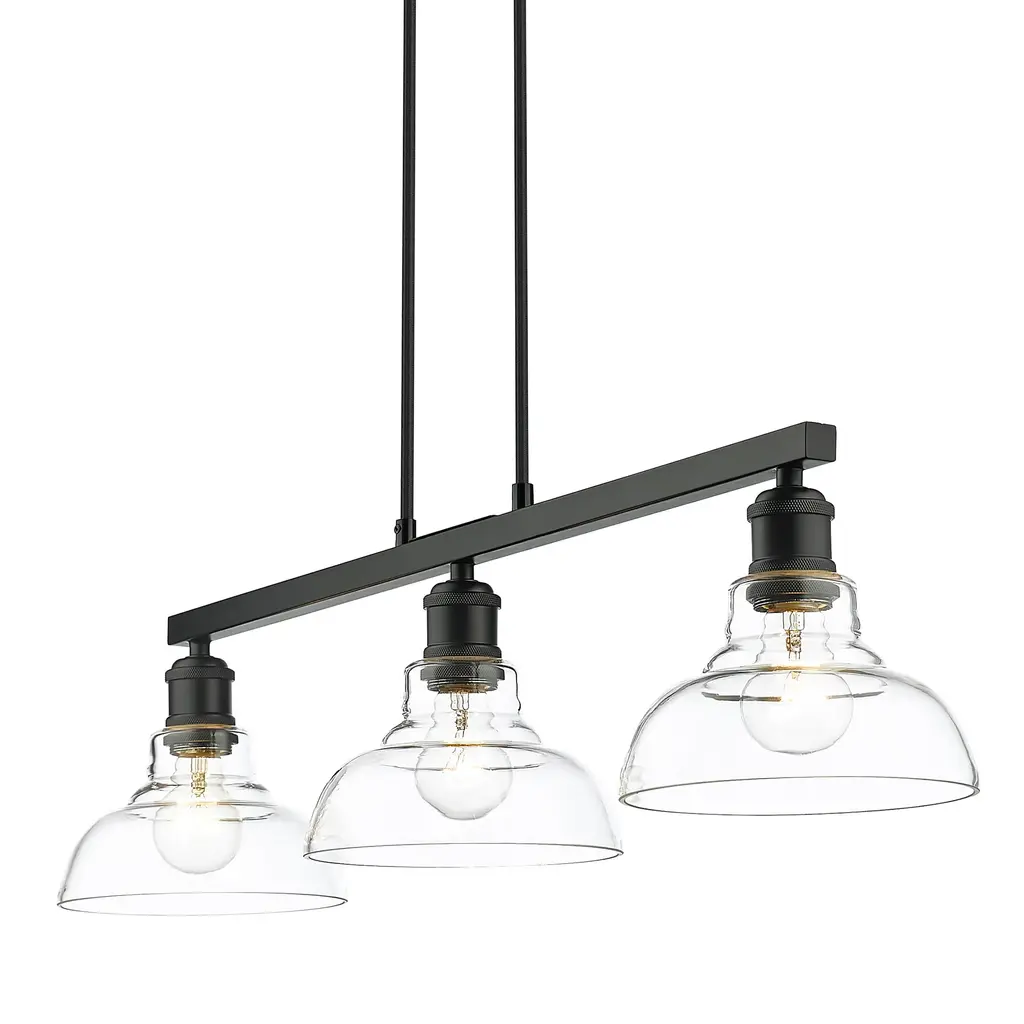 This cool, industrial design is perfect for transitional to modern decors. The sleek finishes and clear glass make bright, stylish fixtures. Safety-rated for damp locations, it is ready for any room. Enhance your home's contemporary style with the beautiful details of the Carver Collection. This 3 light semi-flush is perfect for foyers, living rooms, and hallways.