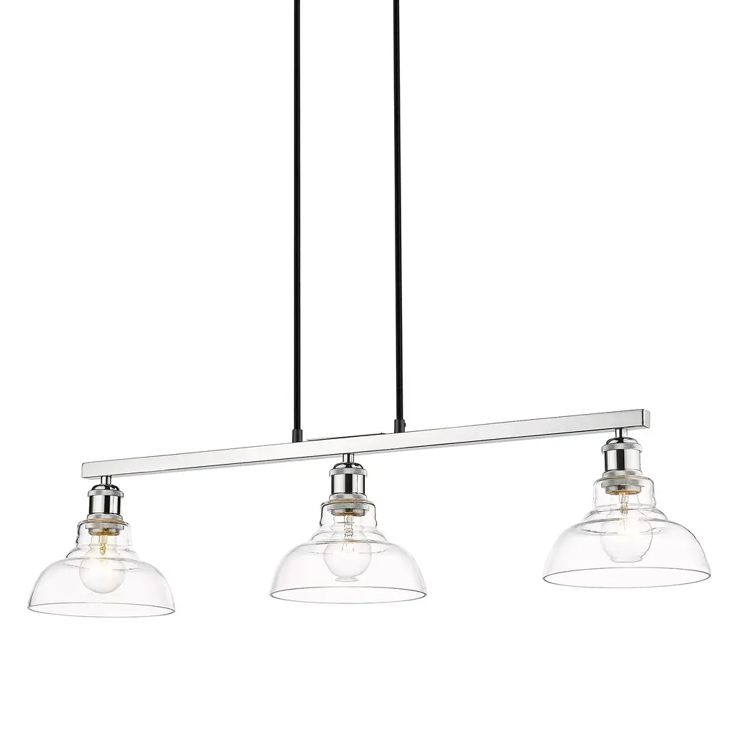 This cool, industrial design is perfect for transitional to modern decors. The sleek finishes and clear glass make bright, stylish fixtures. Safety-rated for damp locations, it is ready for any room. Enhance your home's contemporary style with the beautiful details of the Carver Collection. This 3 light semi-flush is perfect for foyers, living rooms, and hallways.