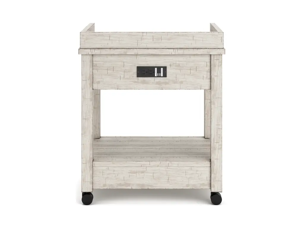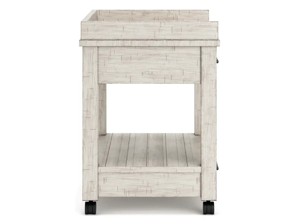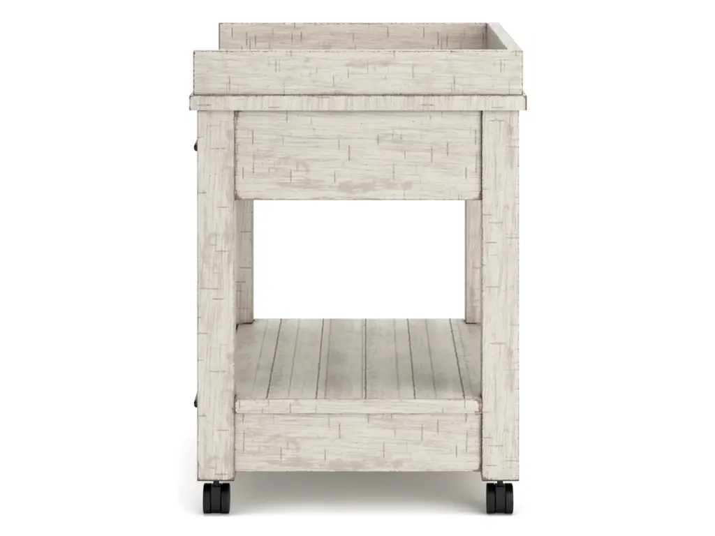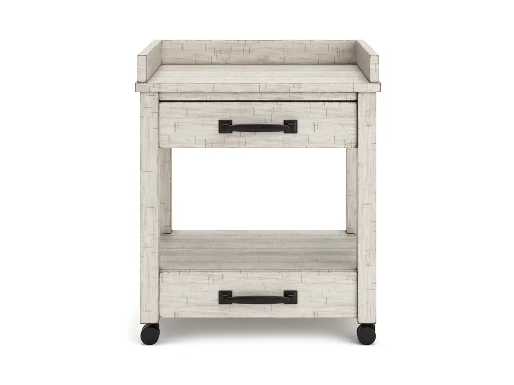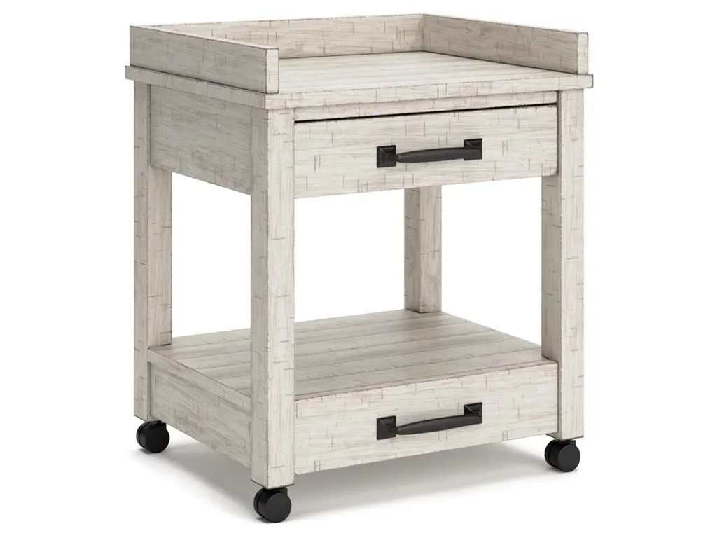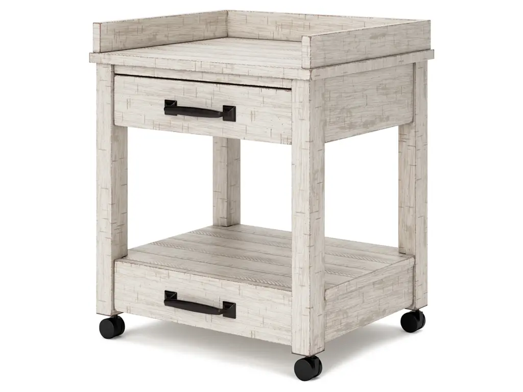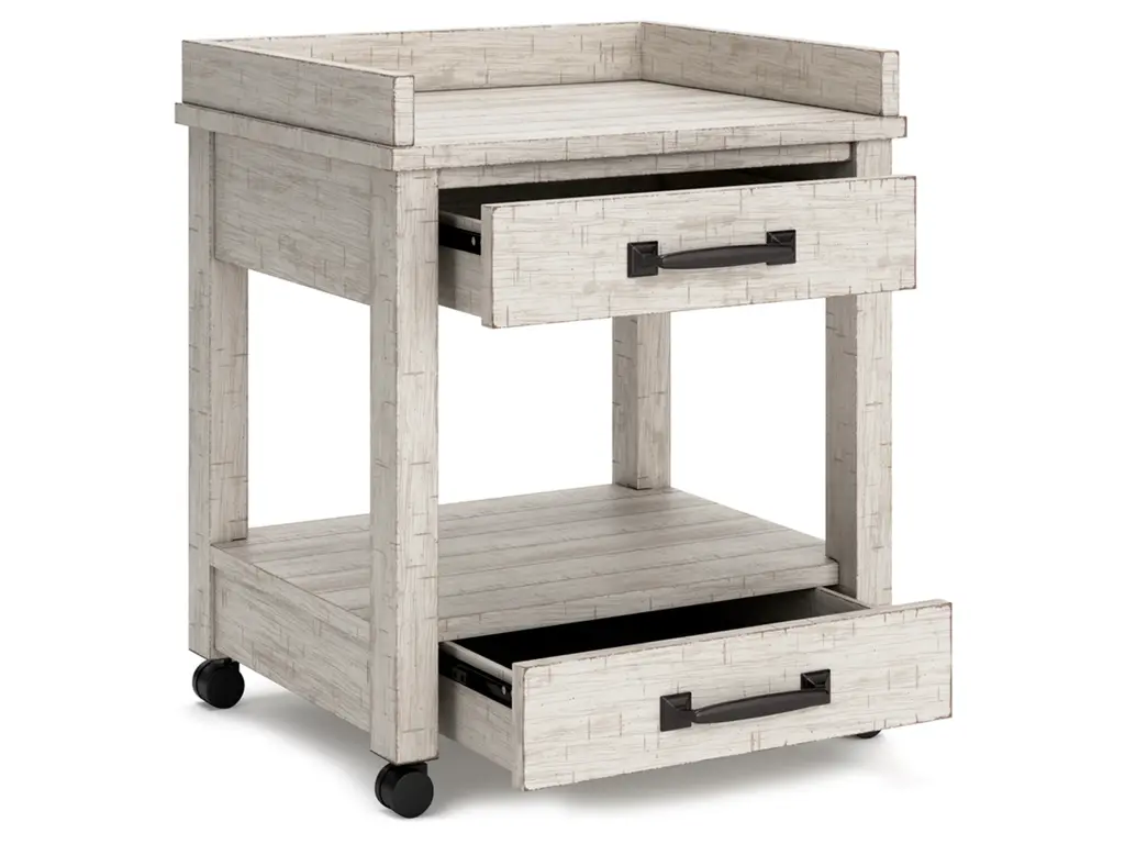 Set on casters for easy mobility, the Carynhurst printer stand rolls out a fresh look in modern farmhouse living. Two smooth-gliding drawers with dovetail construction reflect high quality that never goes out of fashion. Pair of electrical outlets and USB charging ports make it an indispensable home office essential.