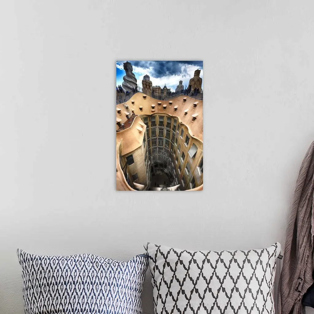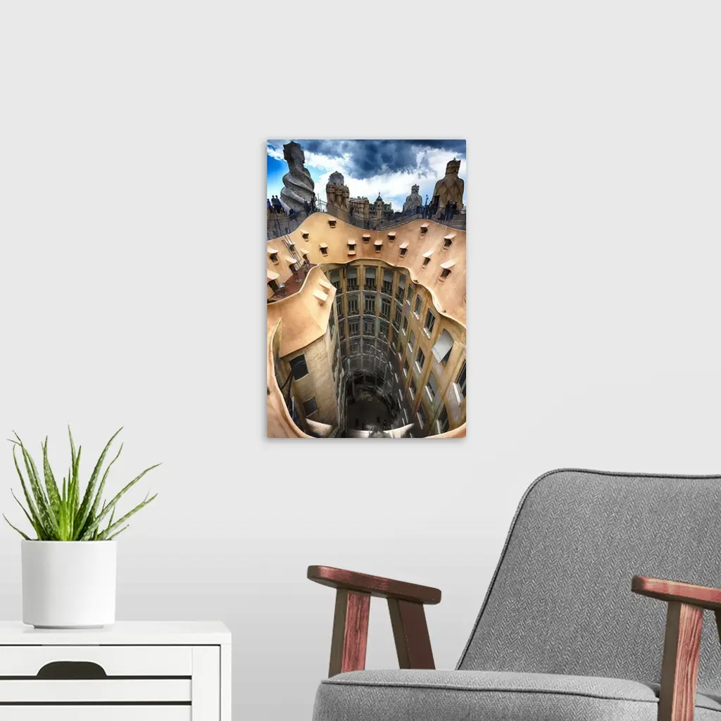 Rooftop View of Casa Mila (La Pedrera) With Group of Chimneys