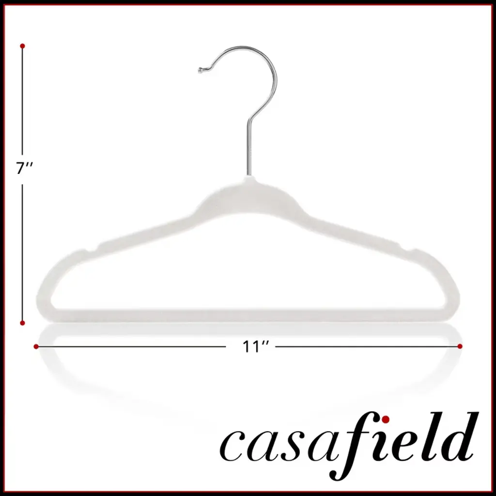 Casafield 11" Velvet Baby Hangers For Infant & Toddler Clothes, Ivory - Set Of 50