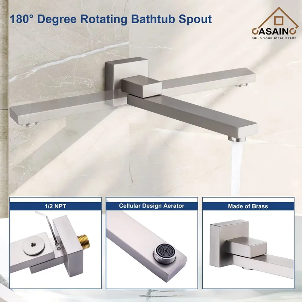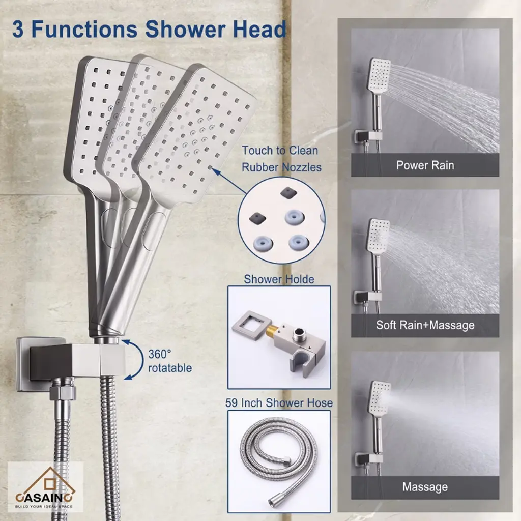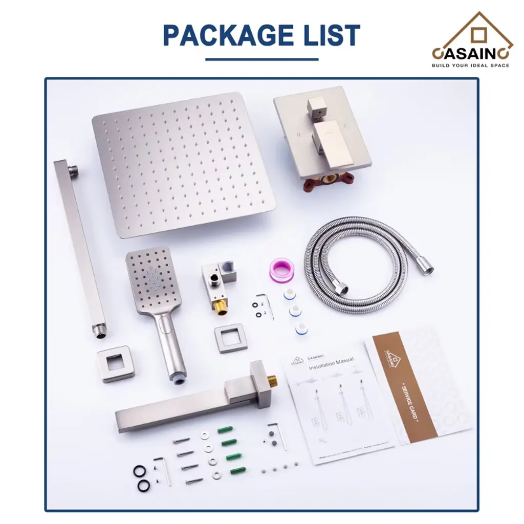 Casainc 1-handle 3-spray Pattern 12 In Wall Mount Shower Head, Tub And Shower Faucet, Brushed Nickel (Valve Included)