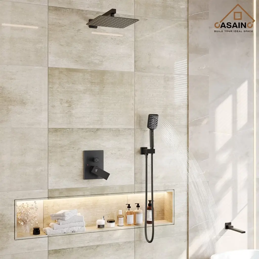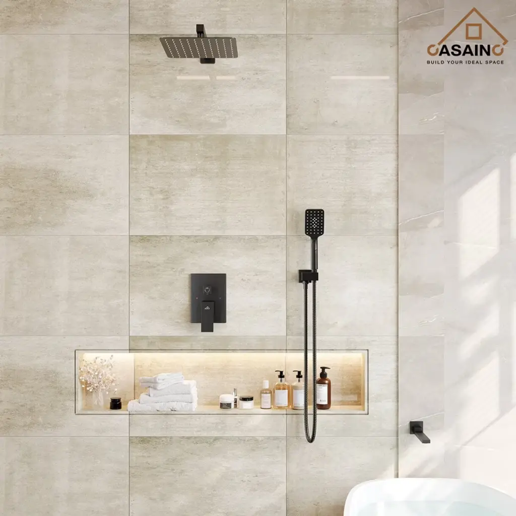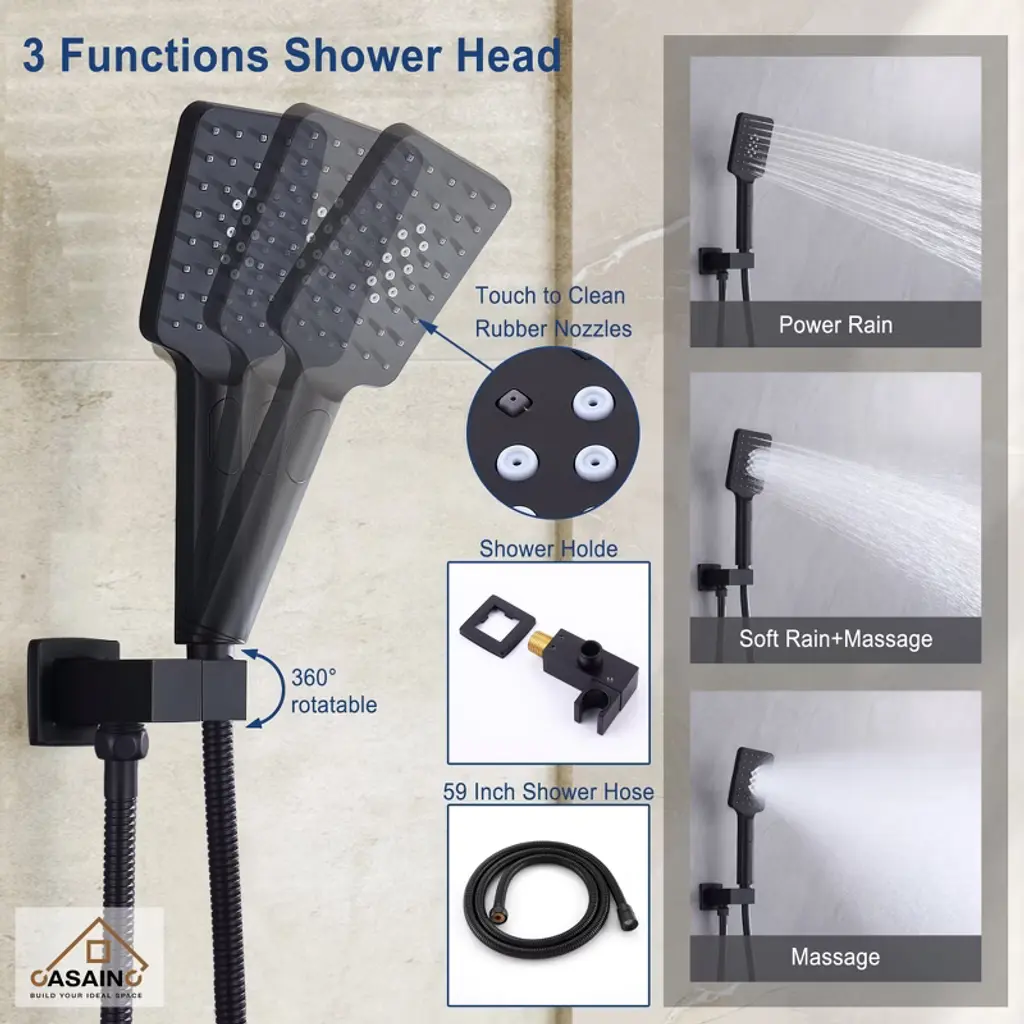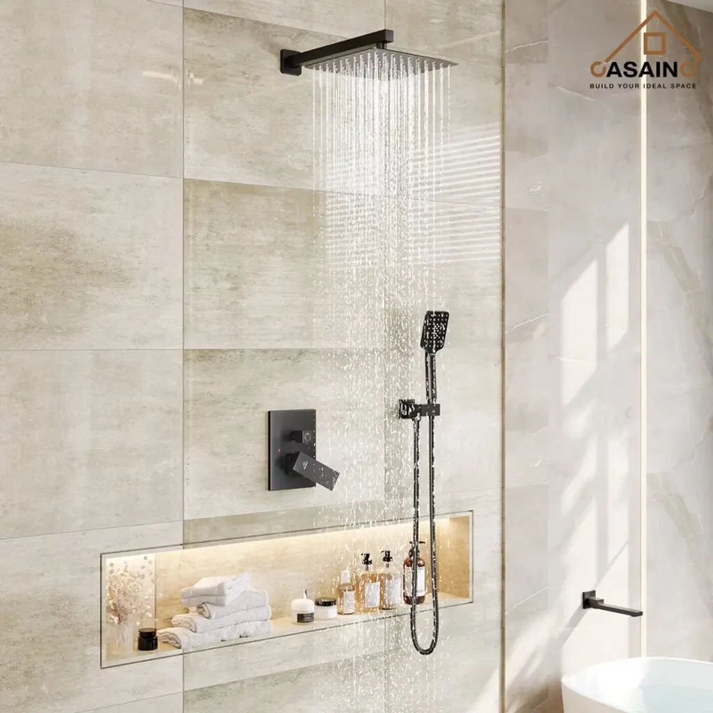 Casainc 1-handle 3-spray Pattern 12 In. Wall Mount Shower Set Shower Head, Tub And Shower Faucet, Matte Black (Valve Included)