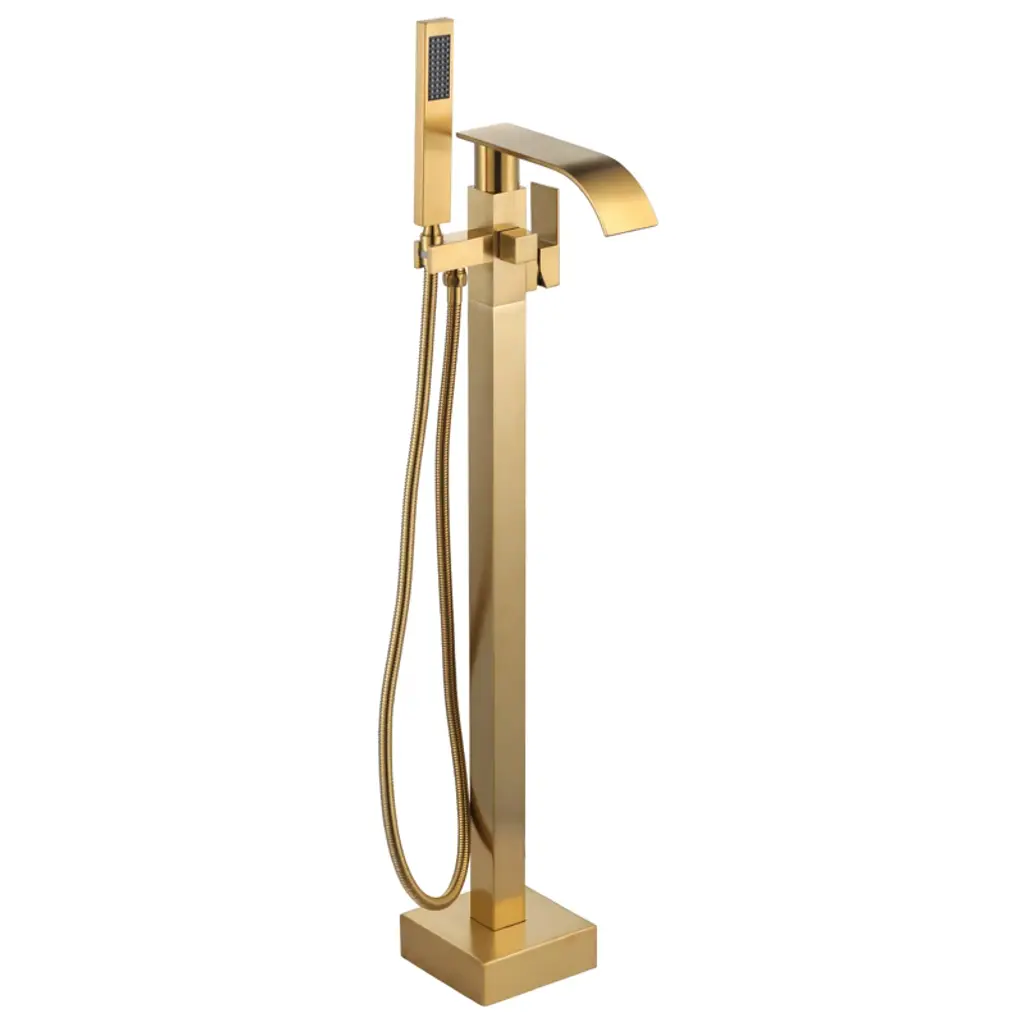 Casainc 1-handle Floor Mount Freestanding Tub Faucet With Handheld Shower In Brushed Gold