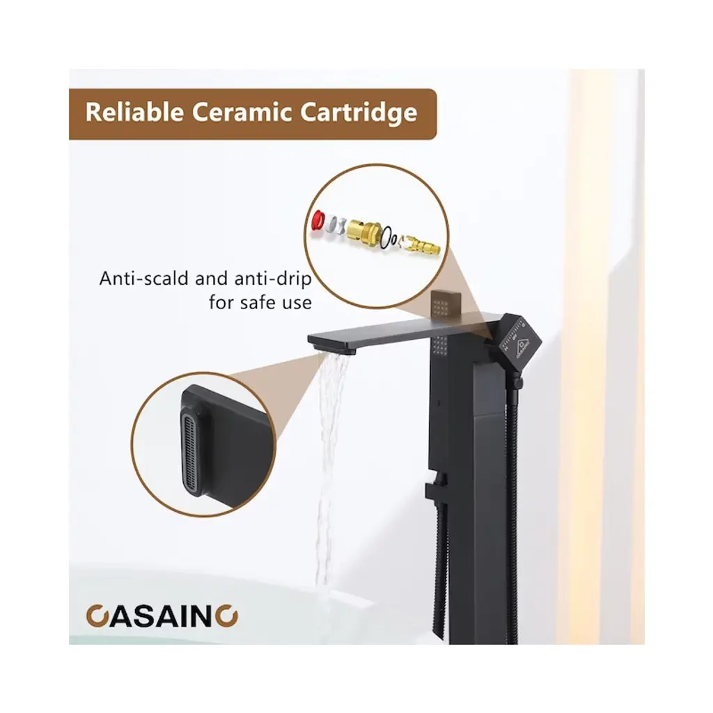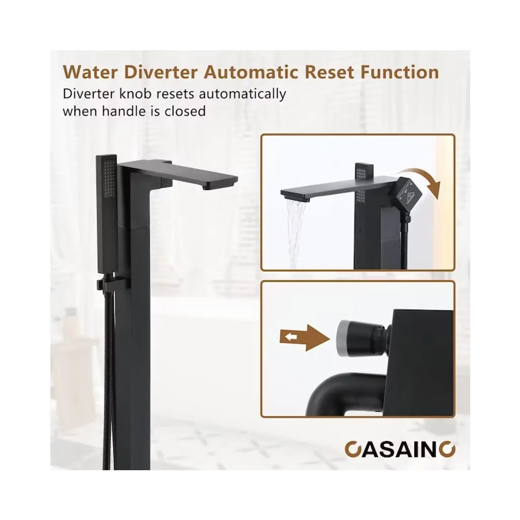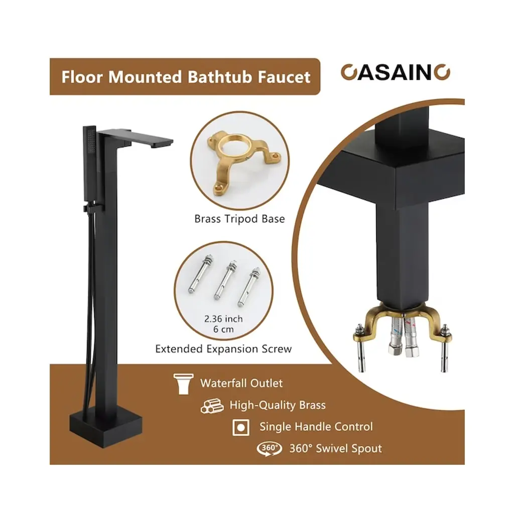 Casainc 1-handle Floor Mount Freestanding Tub Faucet With Square Handheld Shower In Matte Black