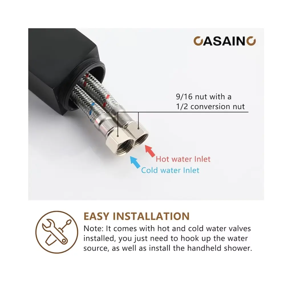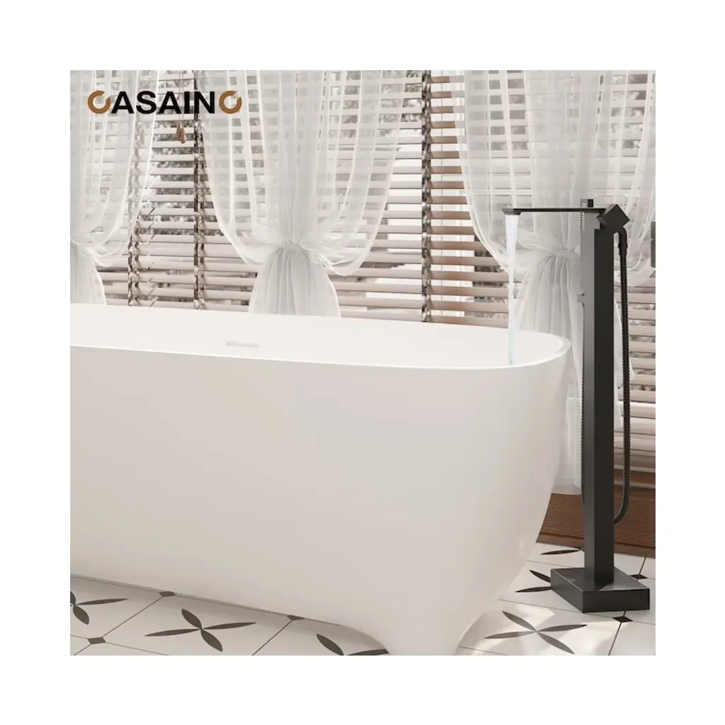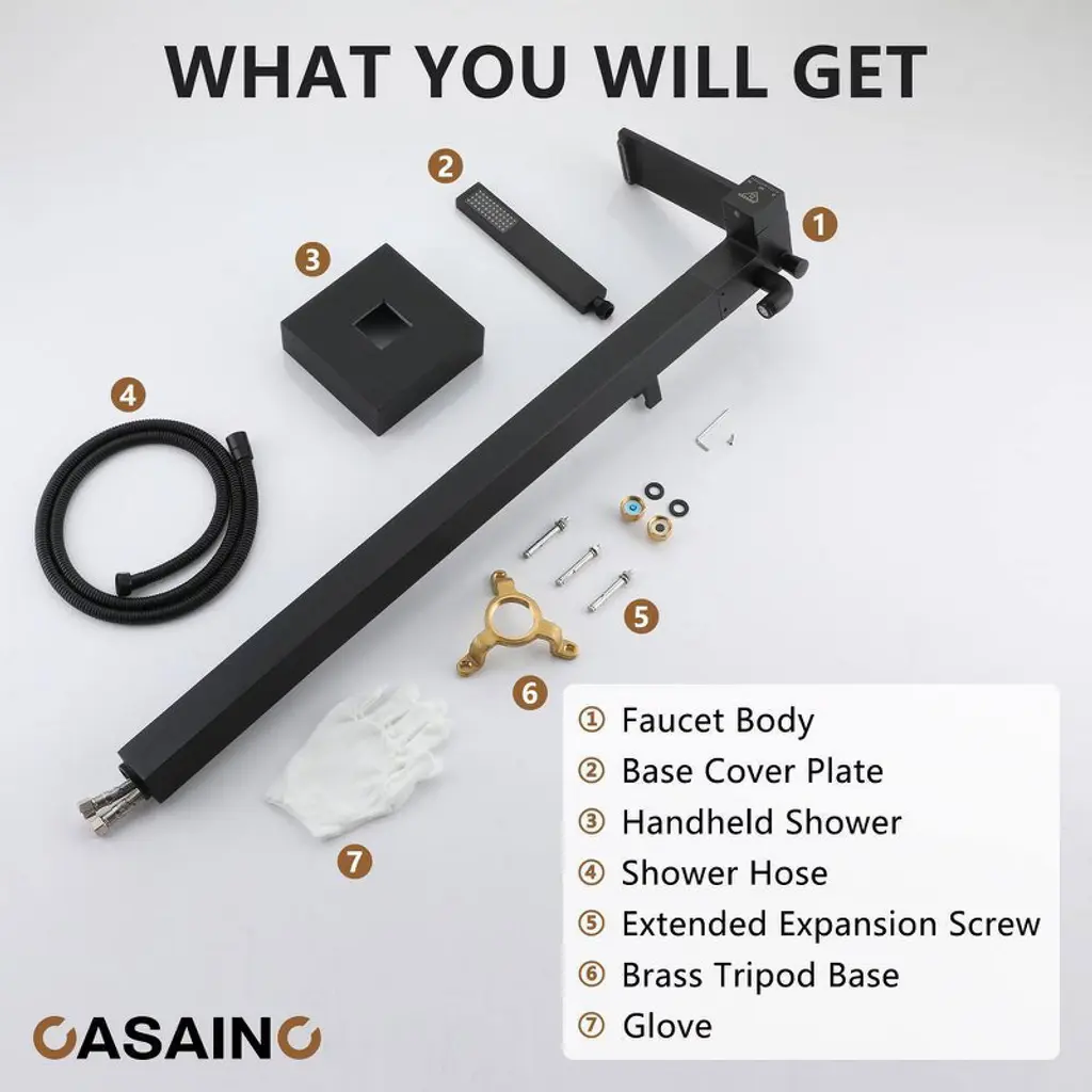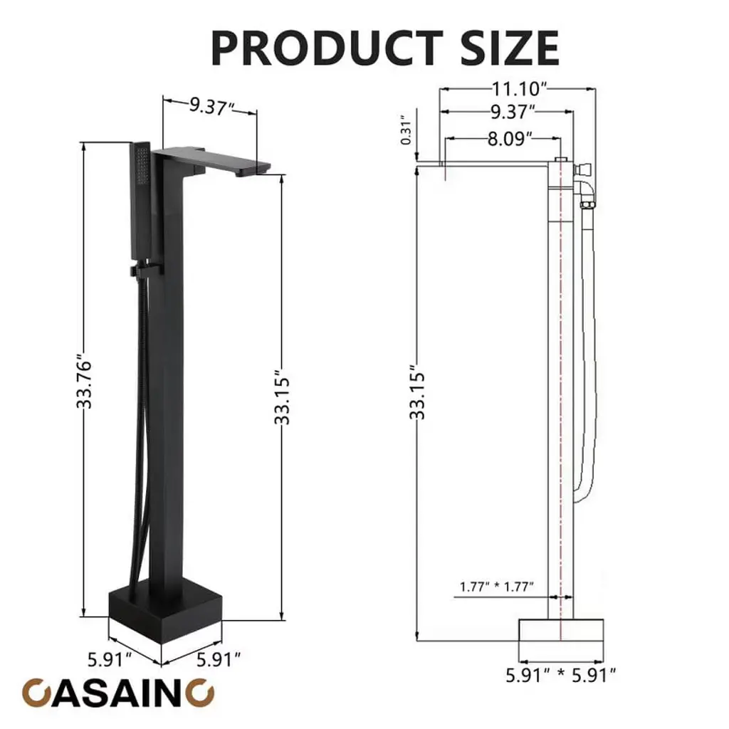 Casainc 1-handle Floor Mount Freestanding Tub Faucet With Square Handheld Shower In Matte Black