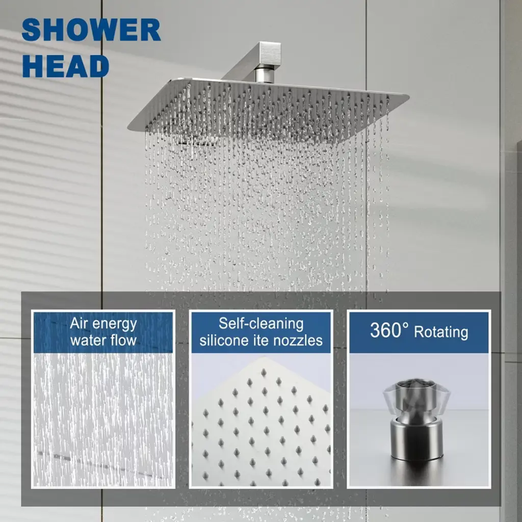 Elevate your daily routine with this modern luxury shower system designed to transform any bathroom into a spa-like retreat. Featuring a sleek, minimalist design and crafted from durable, corrosion-resistant materials and quality parts, this shower system offers both performance and style. Ideal for both renovations and new construction, it fits most U.S. plumbing standards for effortless installation. Perfect for those who value clean design and dependable functionality.