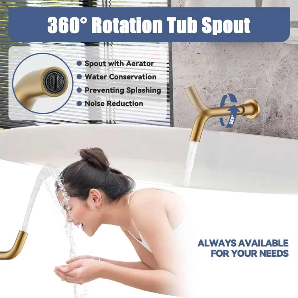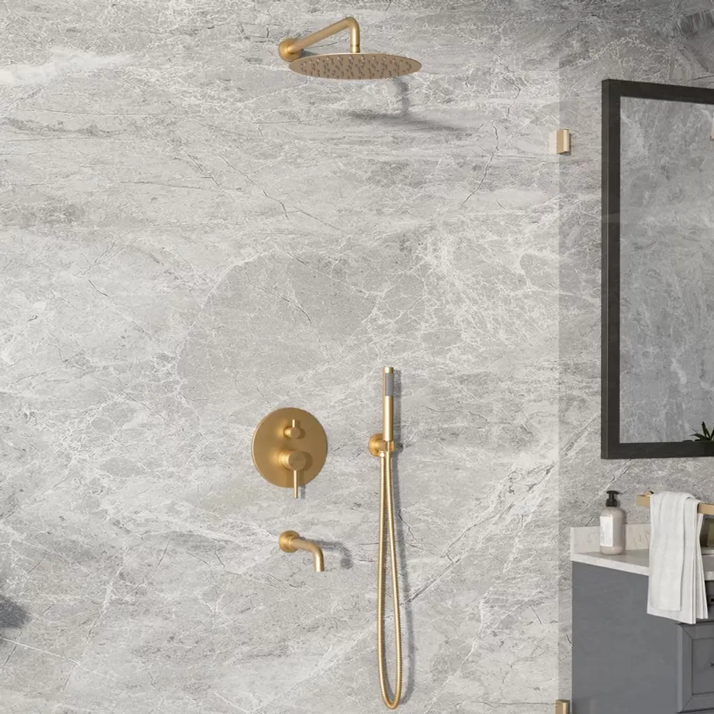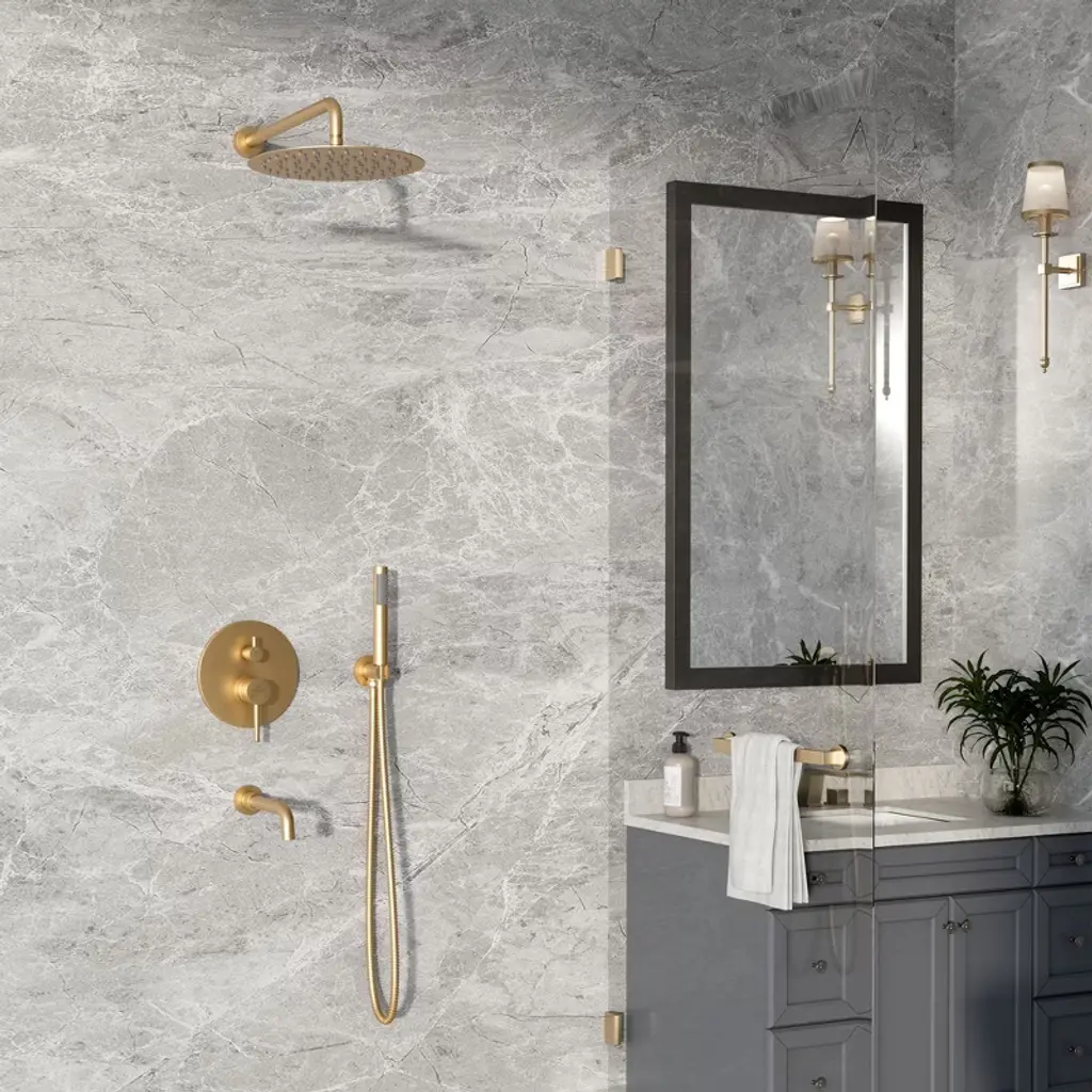 Casainc 1-spray Patterns Round 10 In. Wall Mount Dual Shower Heads With Handheld And Tub Faucet In Brushed Gold