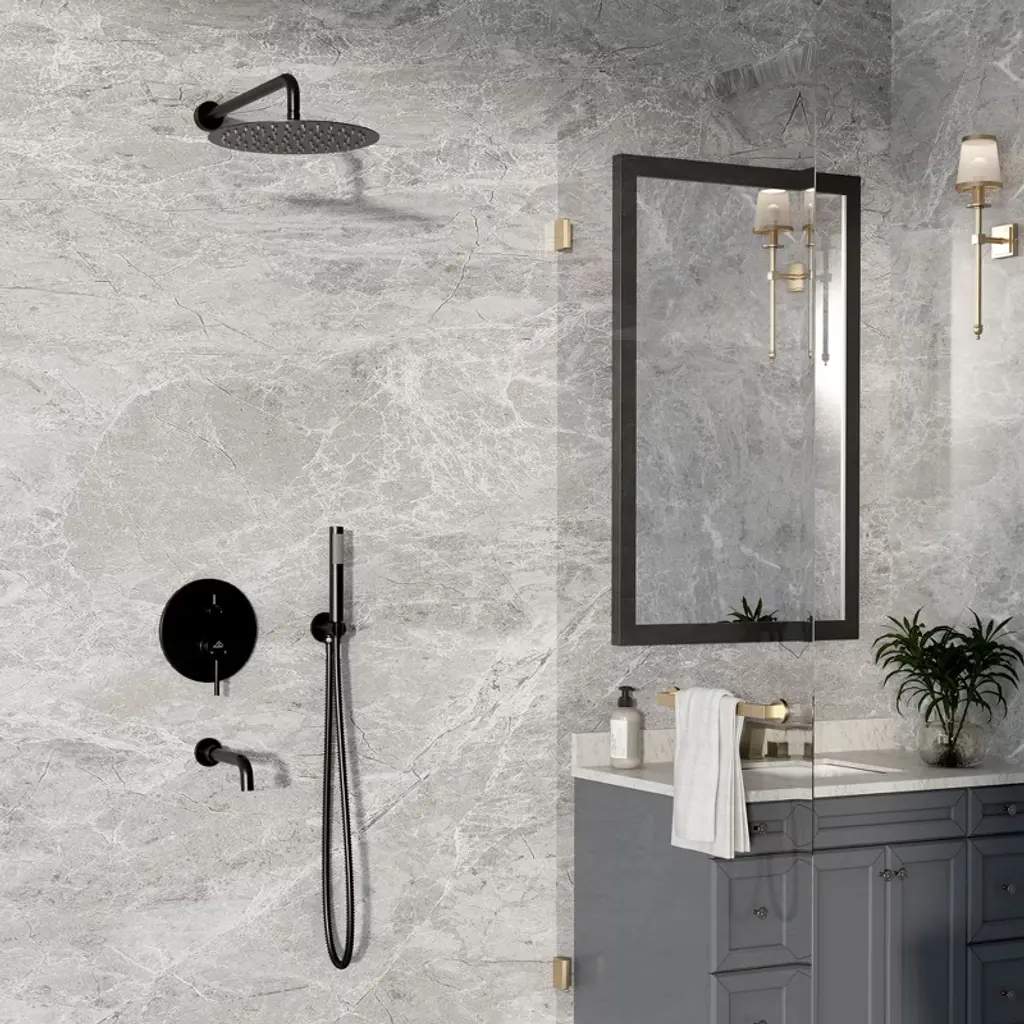 Casainc 1-spray Patterns Round 10 In. Wall Mount Dual Shower Heads With Handheld And Tub Faucet In Matte Black