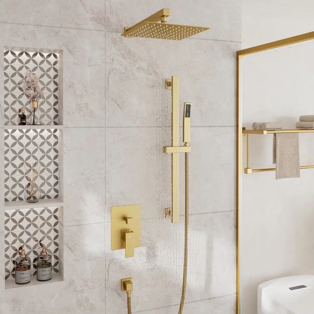 Casainc 1-spray Patterns With 10 In. Wall Mount Dual Shower Heads With Sliding Rod In Spot Resist Brushed Gold (Valve Included)