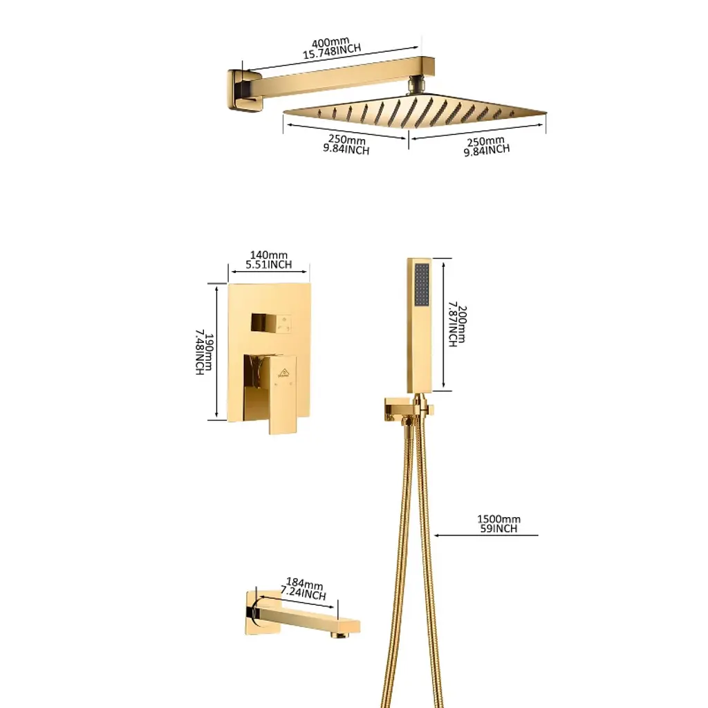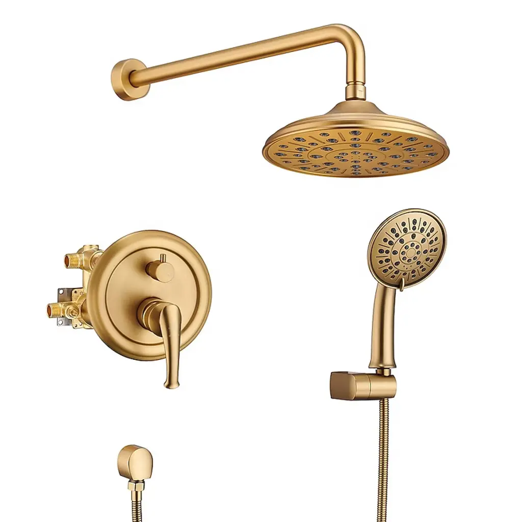 Casainc 1-spray Patterns With 2.5 Gpm 10 In. Tub Wall Mount Dual Shower Heads In Spot Resist Brushed Gold