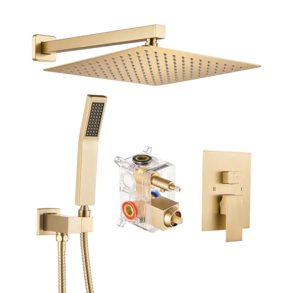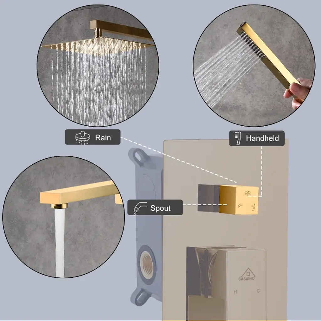 Casainc 1-spray Patterns With 2.5 Gpm 10 In. Tub Wall Mount Dual Shower Heads In Spot Resist Gold