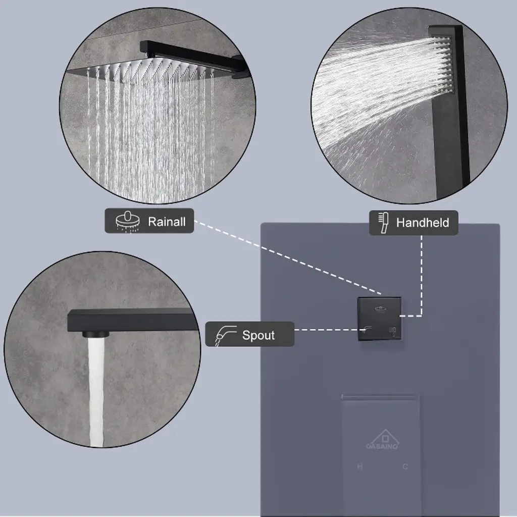 Elevate your daily routine with this modern luxury shower system designed to transform any bathroom into a spa-like retreat. Featuring a sleek, minimalist design and crafted from durable, corrosion-resistant materials and quality parts, this shower system offers both performance and style. Ideal for both renovations and new construction, it fits most U.S. plumbing standards for effortless installation. Perfect for those who value clean design and dependable functionality.
