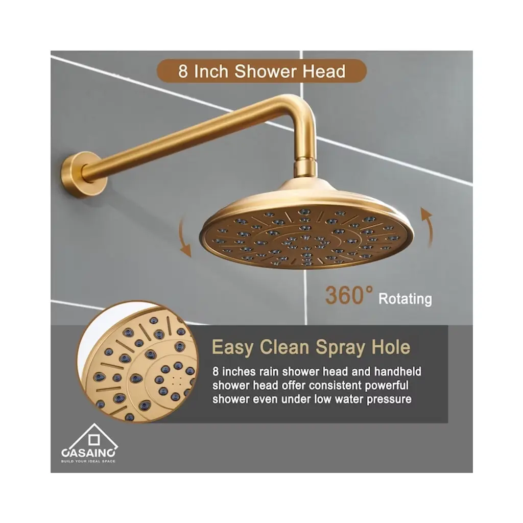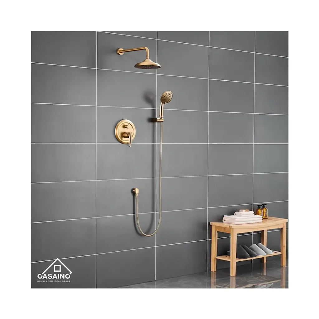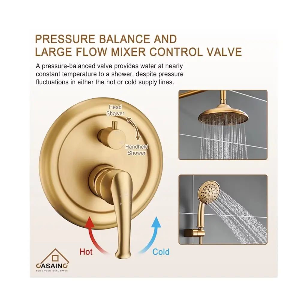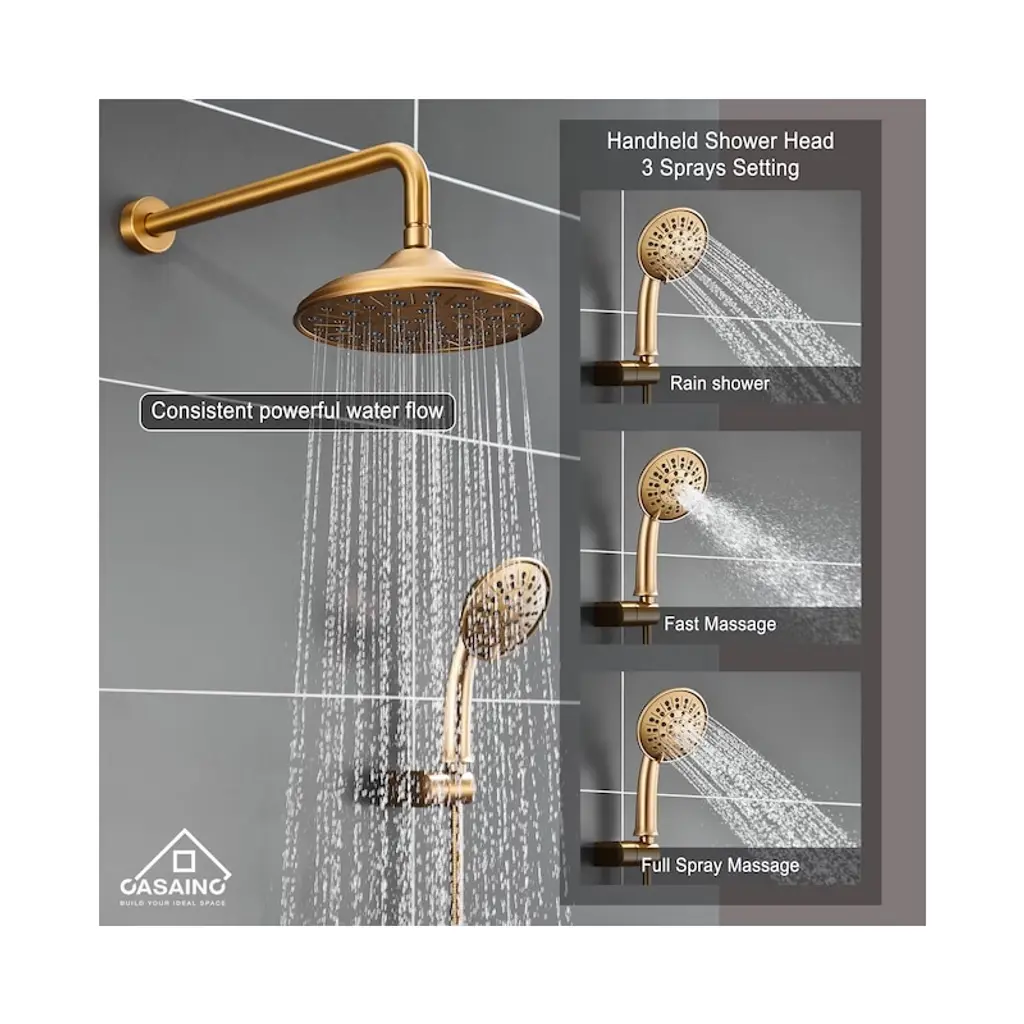 Casainc 10'' Wall Mounted Round Shower System With Handheld Sprayer, Brushed Gold