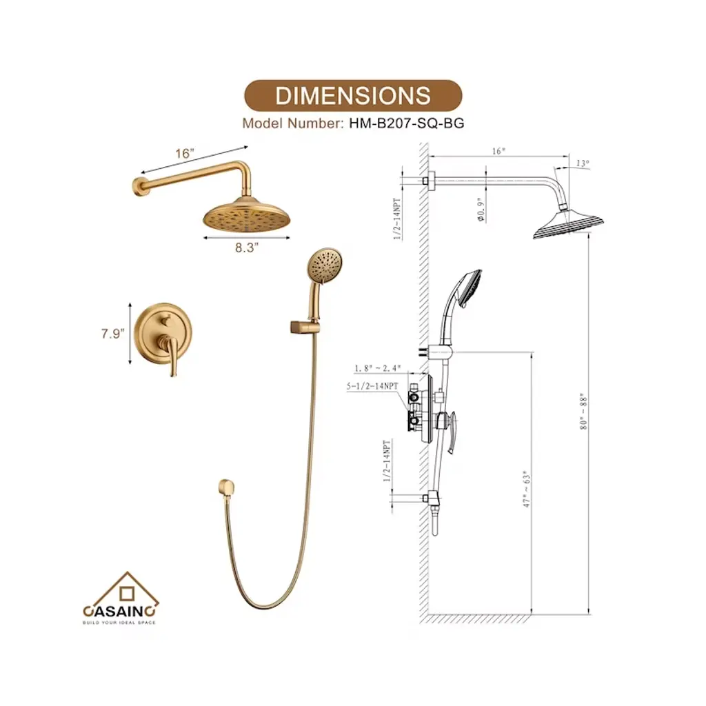 Introducing our premium shower kit with a pressure-balanced valve, designed to minimize water pipe noise and provide precise control over hot and cold water flow. Featuring a user-friendly diverter knob and clearly marked icons for effortless operation. The bathtub spout delivers a smooth, high-volume water flow for an enhanced bathing experience.