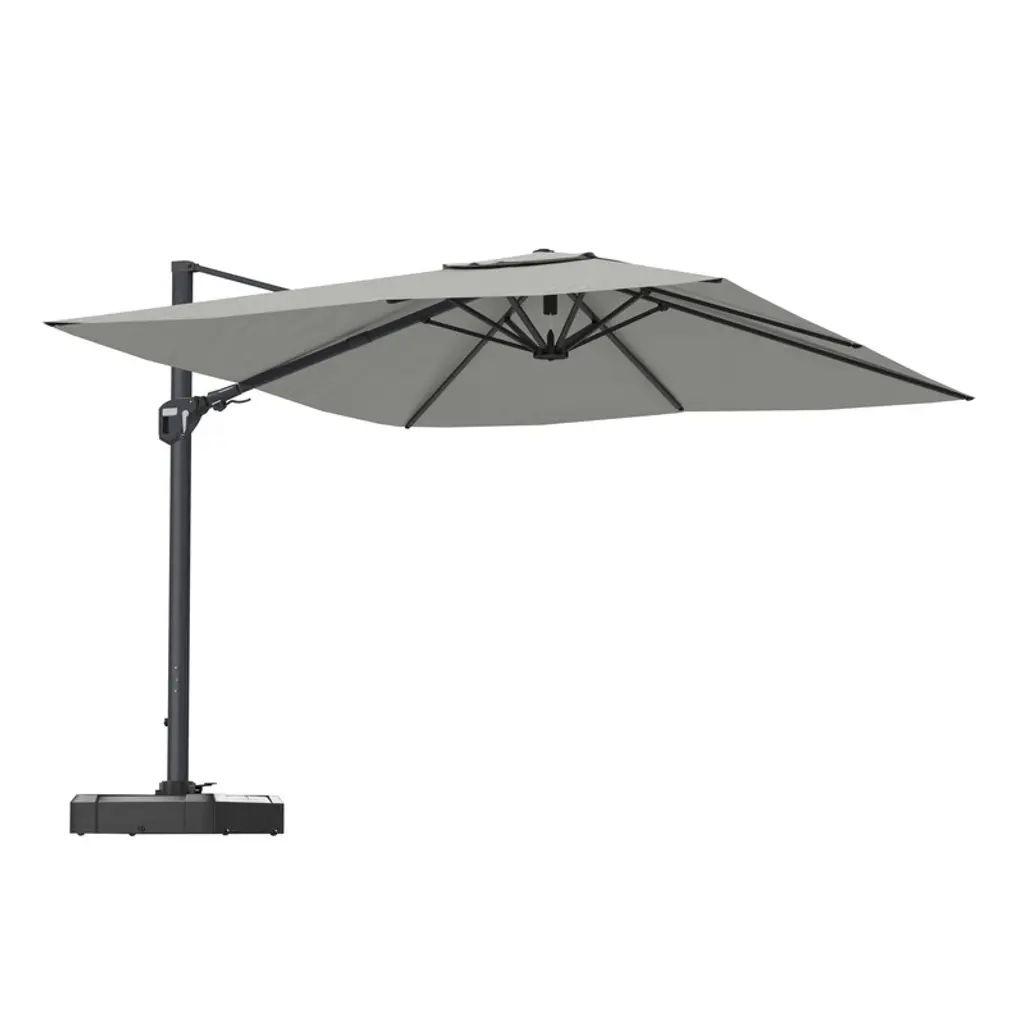 Different from the traditional outdoor umbrella design, this Roman umbrella with hydraulic lifting system. The top position of the umbrella post can be adjusted up and down, it is easy to raise or lower the umbrella.