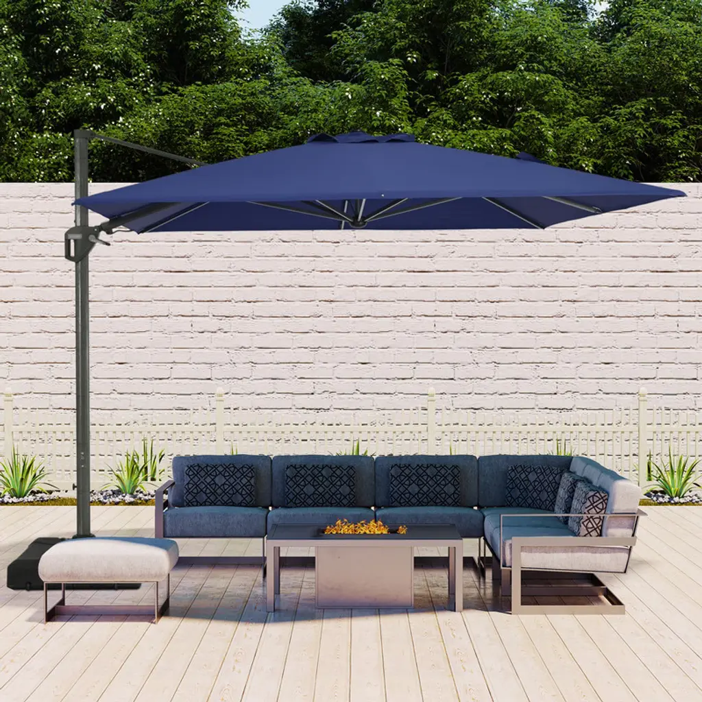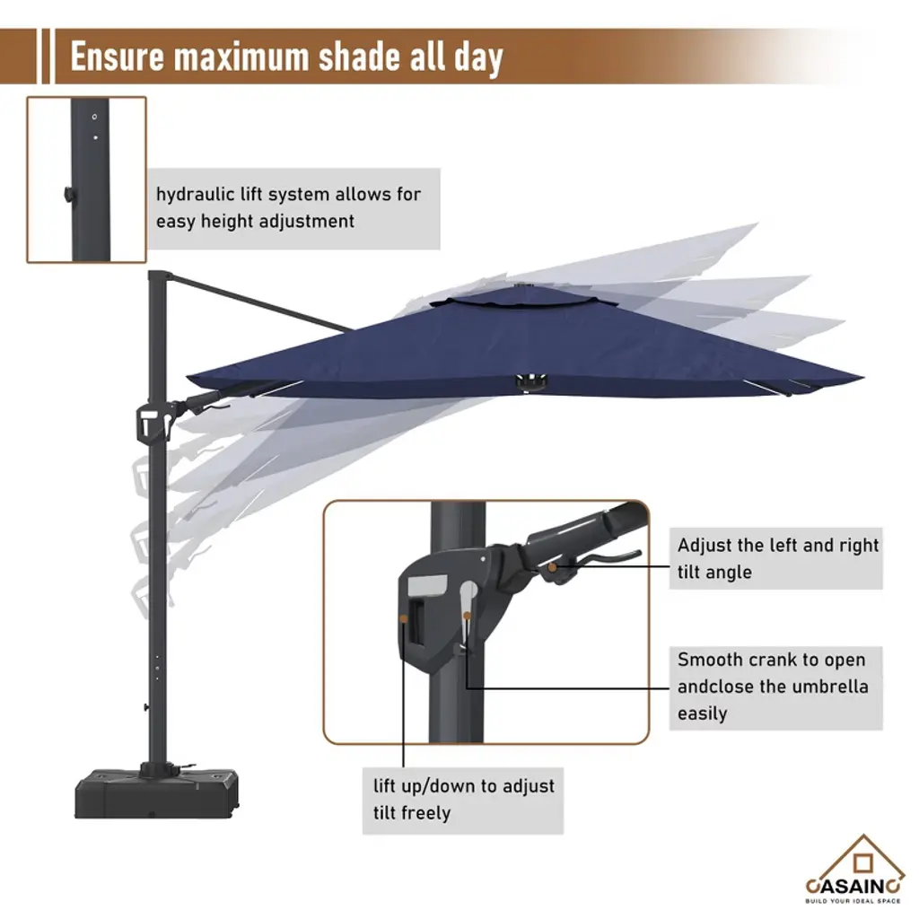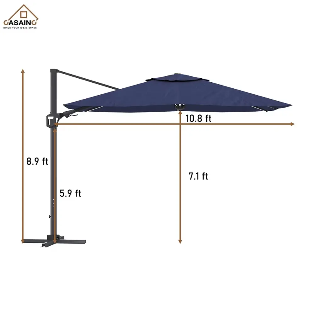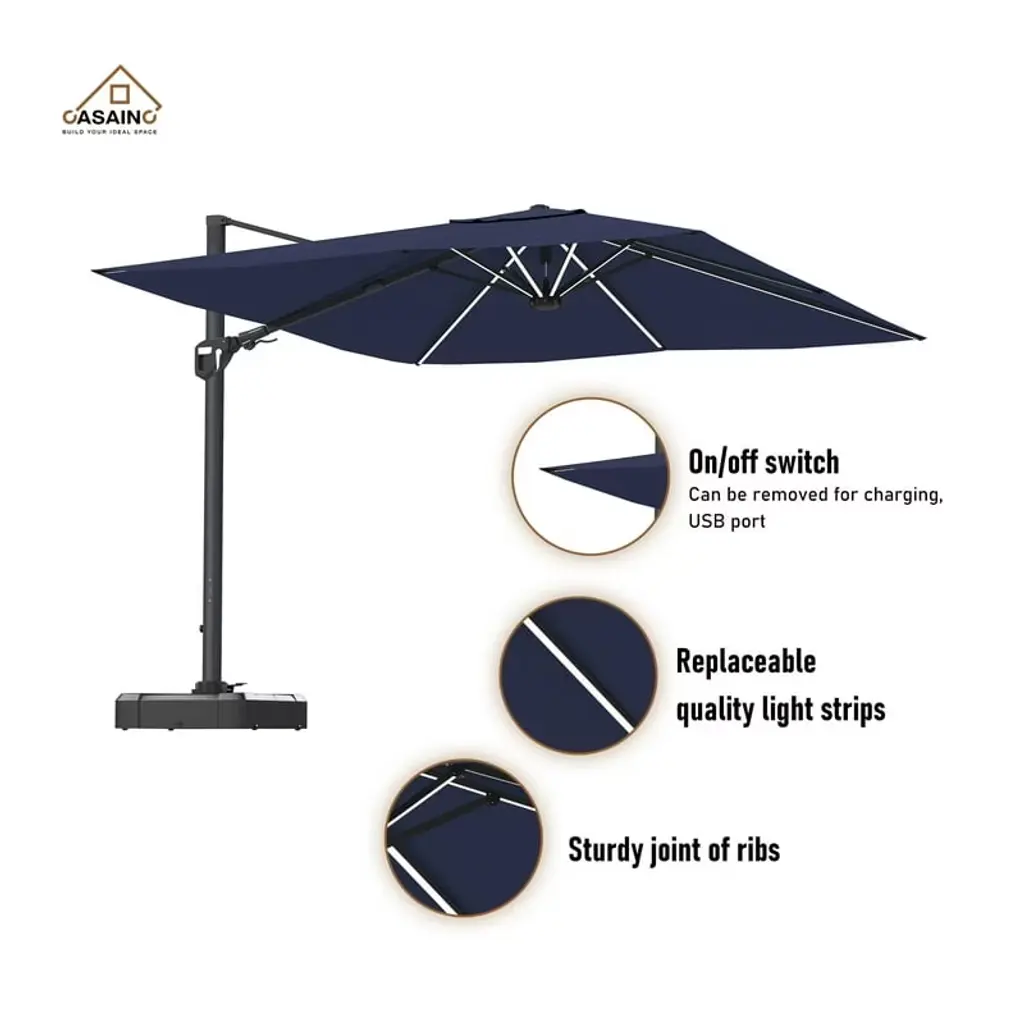 Casainc 11 Ft. Square Cantilever Patio Umbrella With Solar Powered Lights (Without Base), Navy Blue