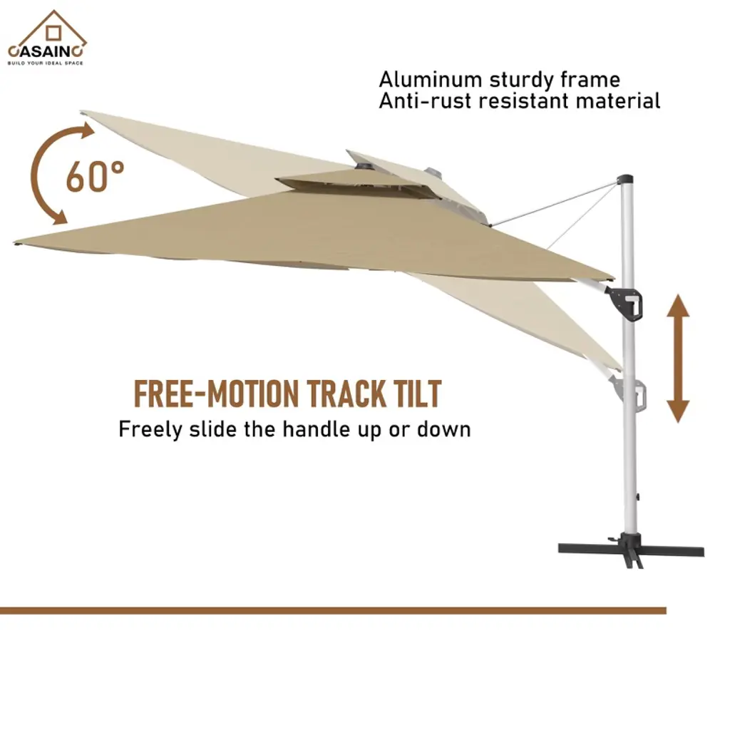 Casainc 11 Ft Square Cantilever Patio Umbrella With Tilt Patio And 360° Base Rotation - Base Not Included, Beige