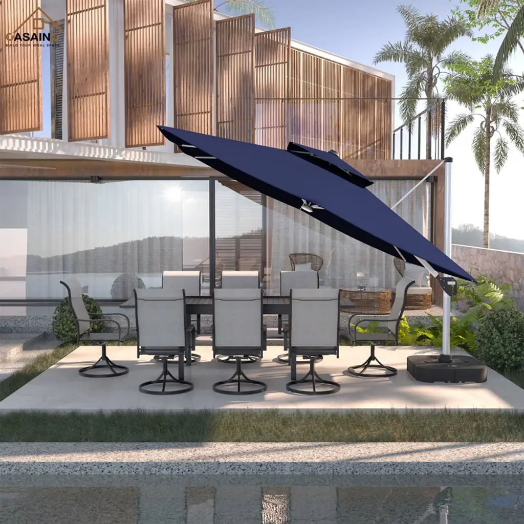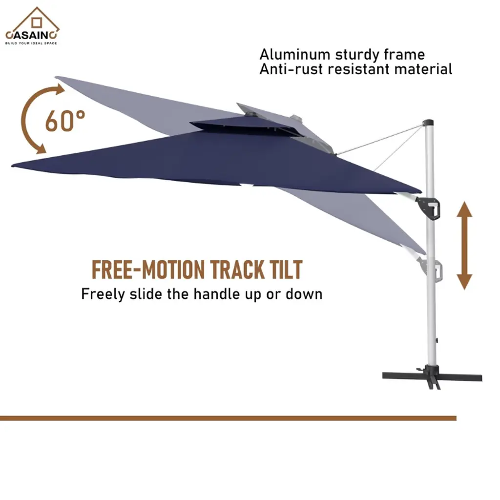 Casainc 11 Ft Square Cantilever Patio Umbrella With Tilt Patio And 360° Base Rotation - Base Not Included, Navy Blue