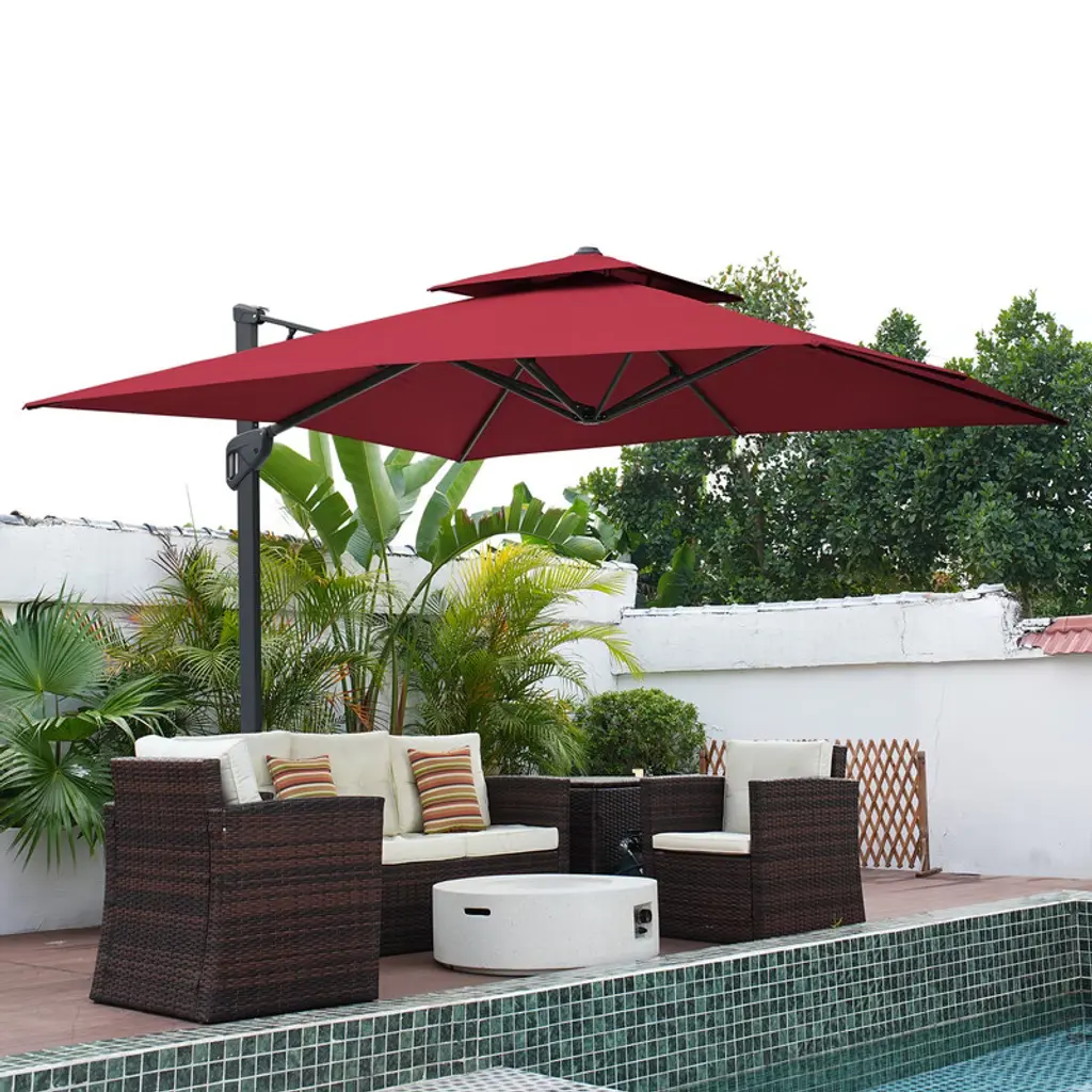 Casainc 11 Ft Square Cantilever Umbrella With Base Included, Red