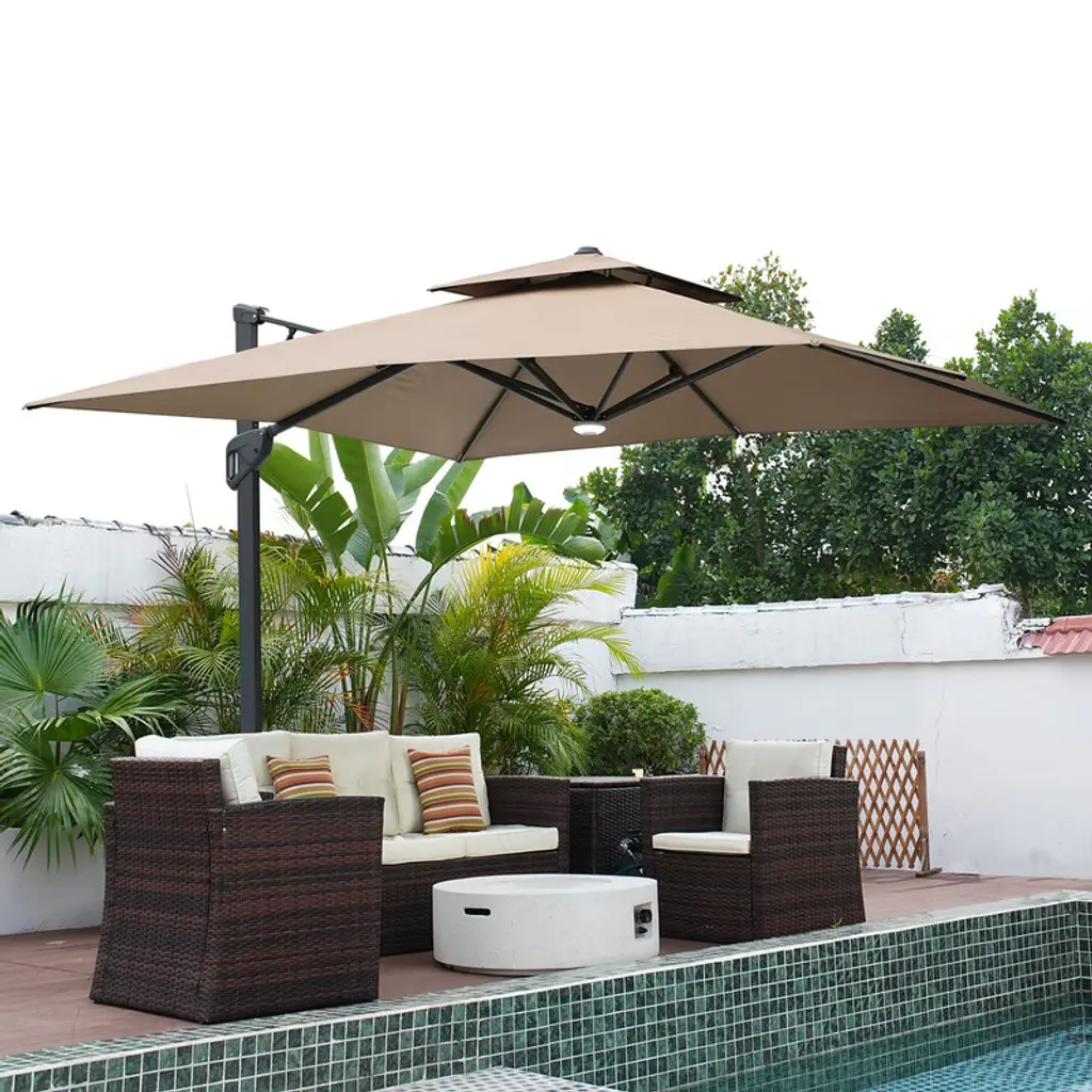 Casainc 11 Ft Square Led Solar Cantilever Umbrella With Base Included, Beige