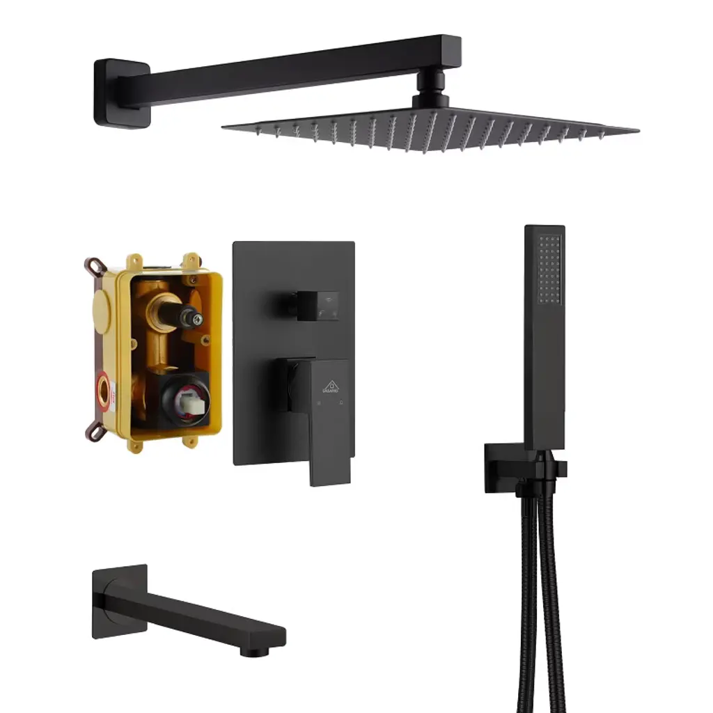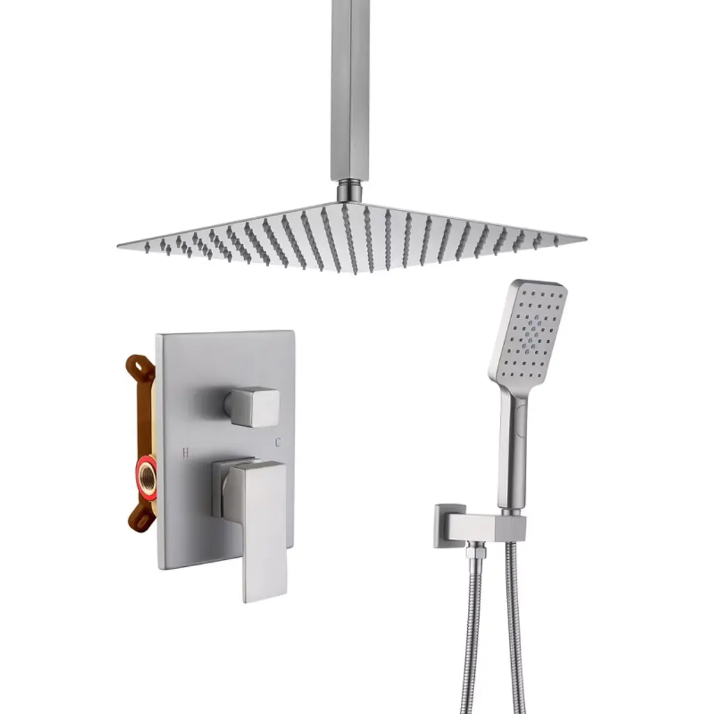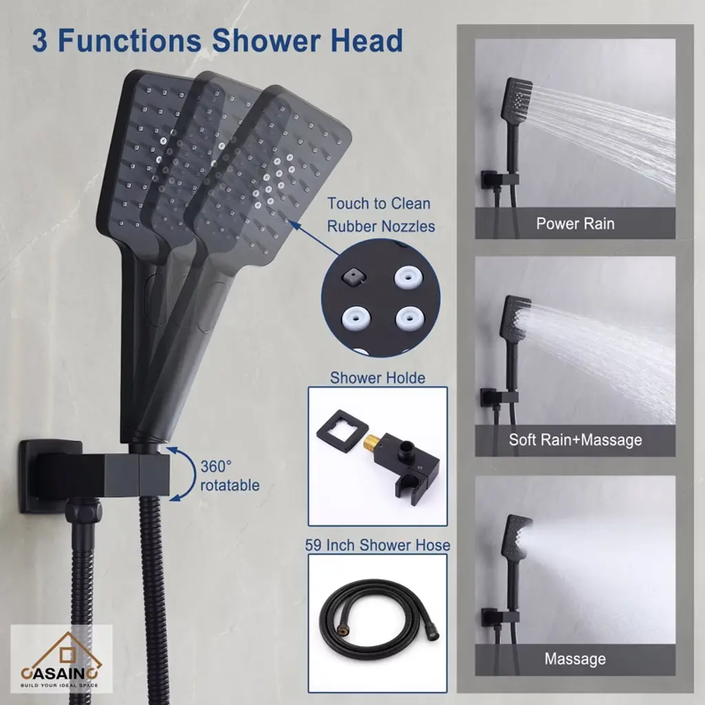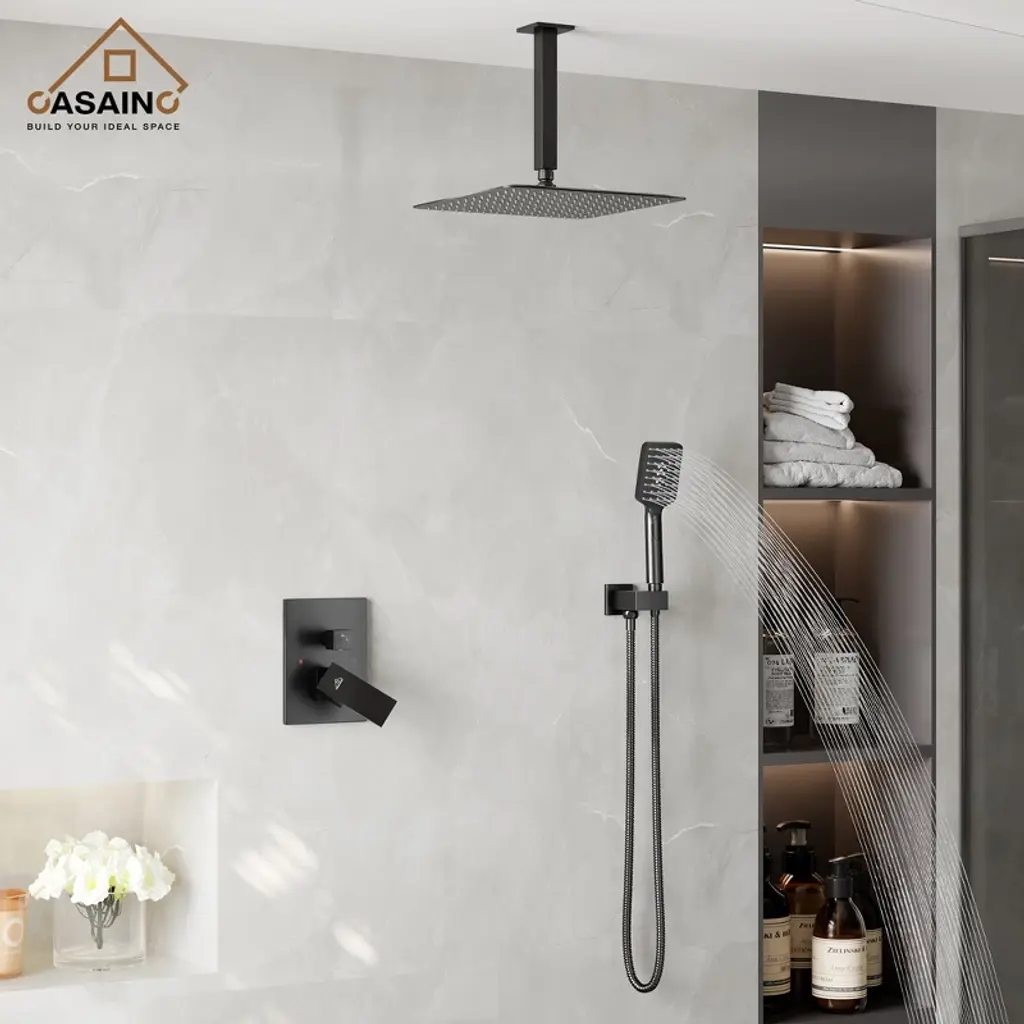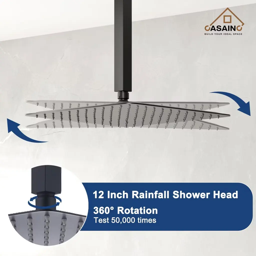 Casainc 3-spray 12 In. Ceiling Mount Dual Shower Heads 2.5 Gpm Fixed And Handheld Shower Head In Matte Black (Valve Included)