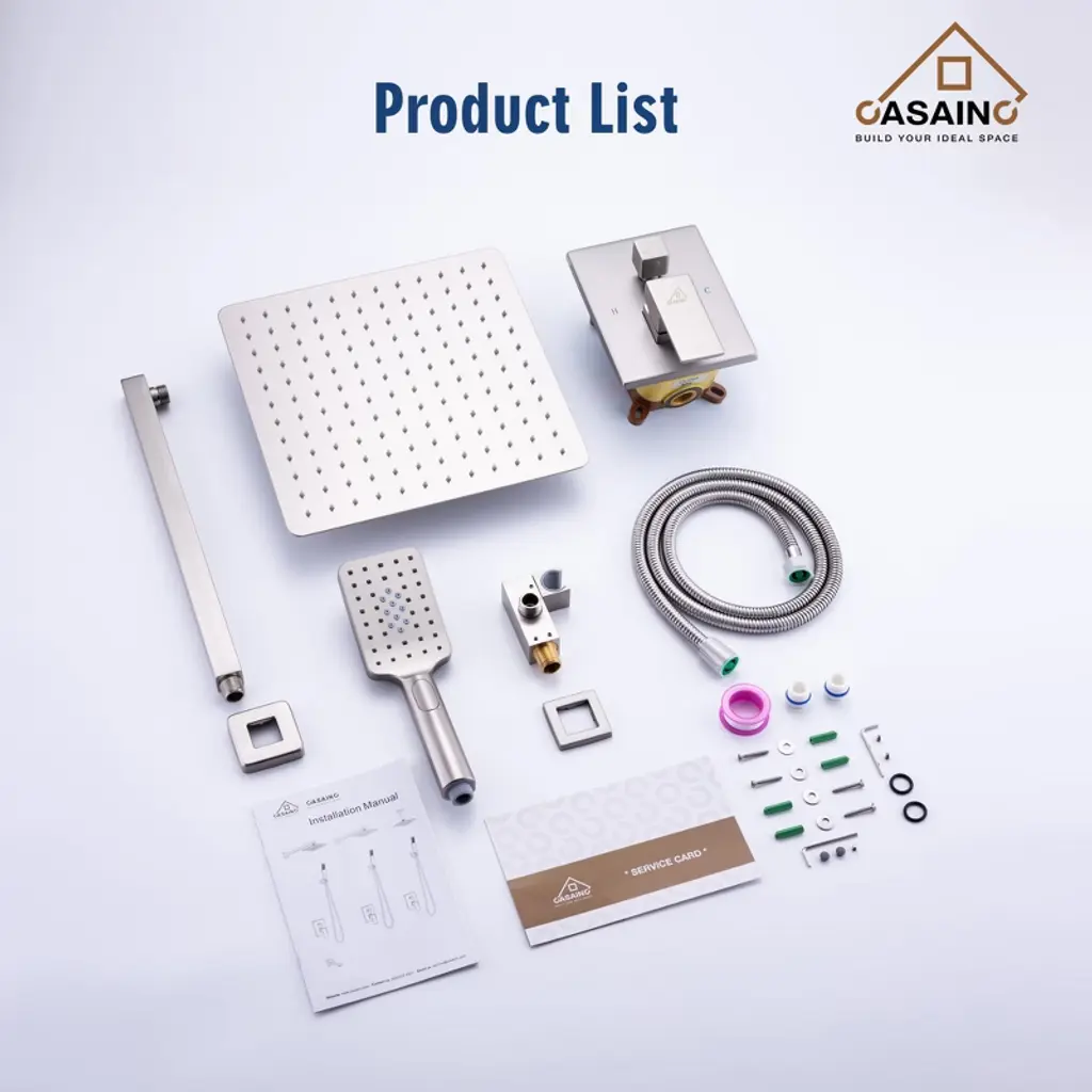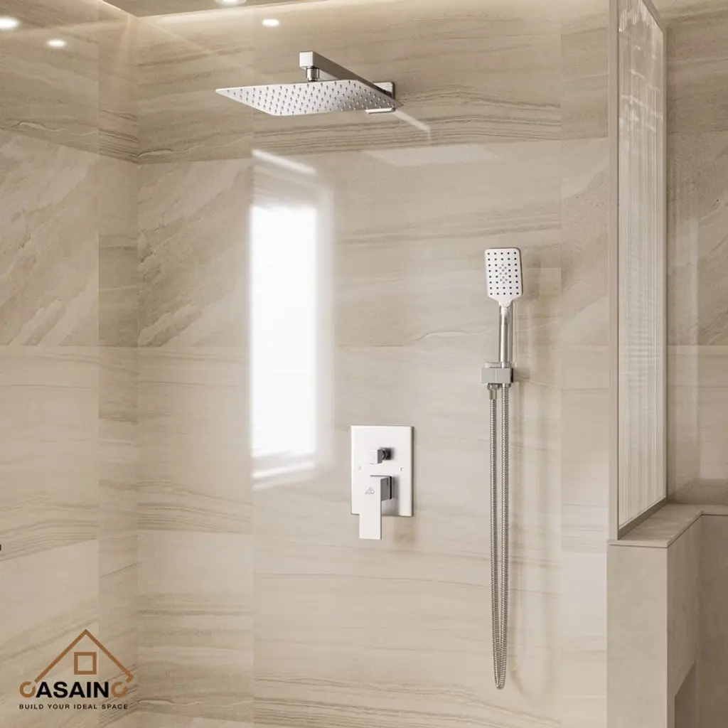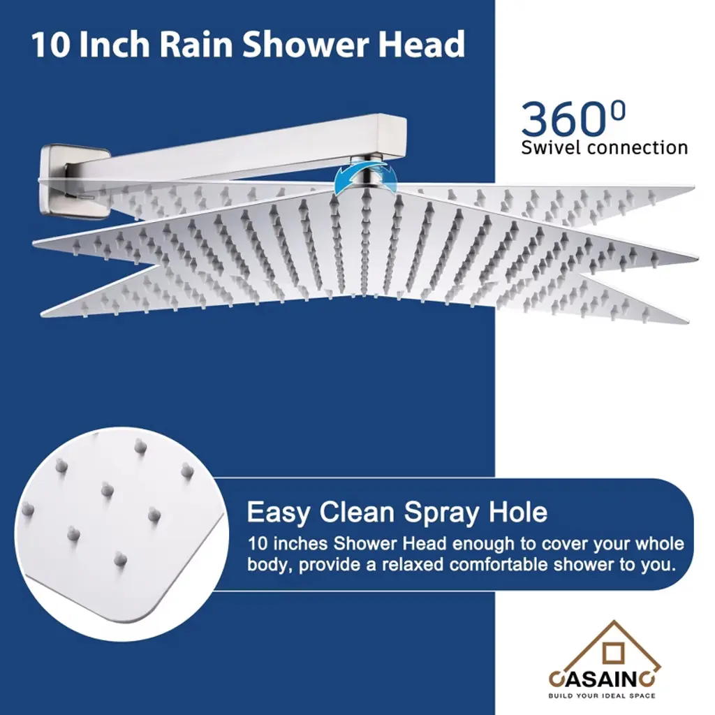 Casainc 3-spray Pattern 10 In. Wall Mount Shower System Shower Head And Functional Handheld, Brushed Nickel (Valve Included)