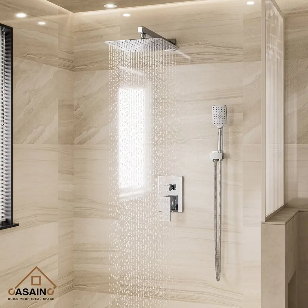 Casainc 3-spray Pattern 10 In. Wall Mount Shower System Shower Head And Functional Handheld, Chrome (Valve Included)