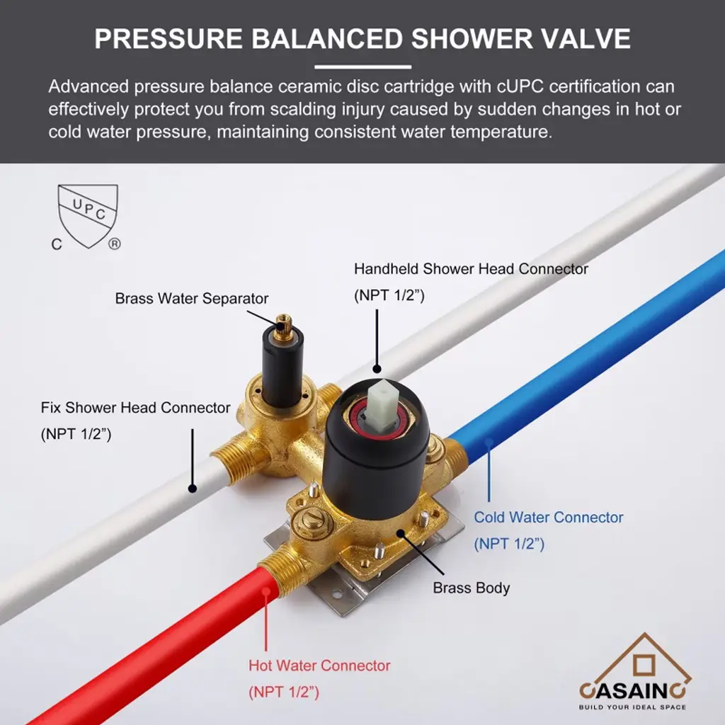 Elevate your daily routine with this modern luxury shower system designed to transform any bathroom into a spa-like retreat. Featuring a sleek, minimalist design and crafted from durable, corrosion-resistant materials and quality parts, this shower system offers both performance and style. Ideal for both renovations and new construction, it fits most U.S. plumbing standards for effortless installation. Perfect for those who value clean design and dependable functionality.