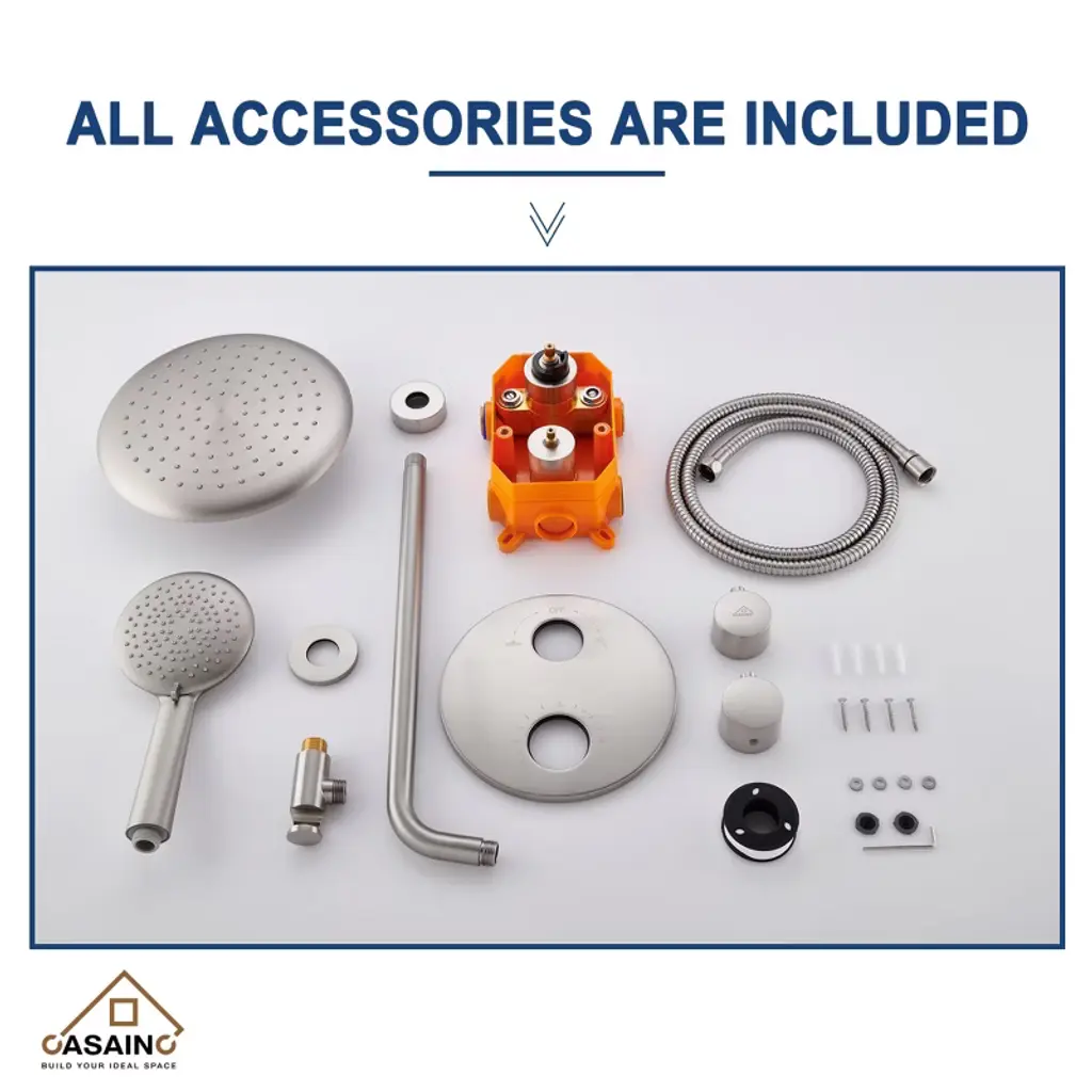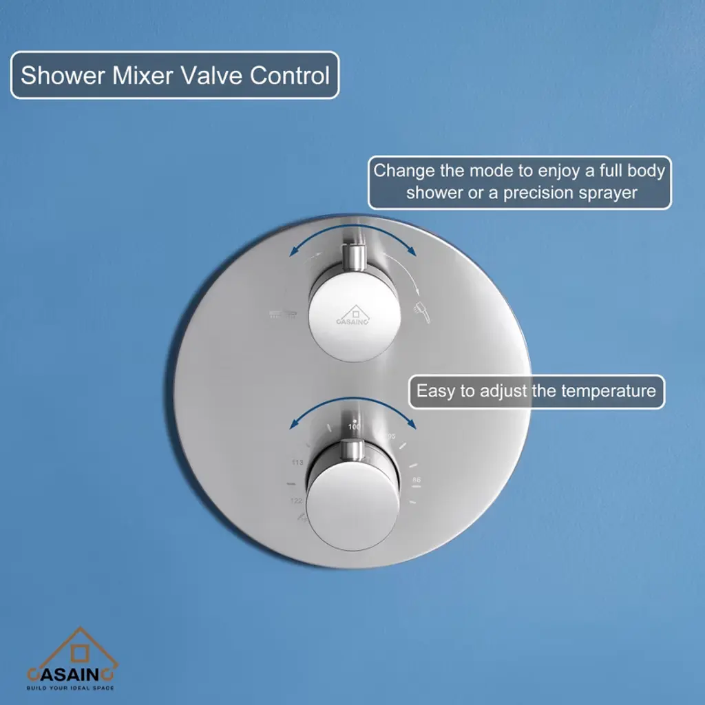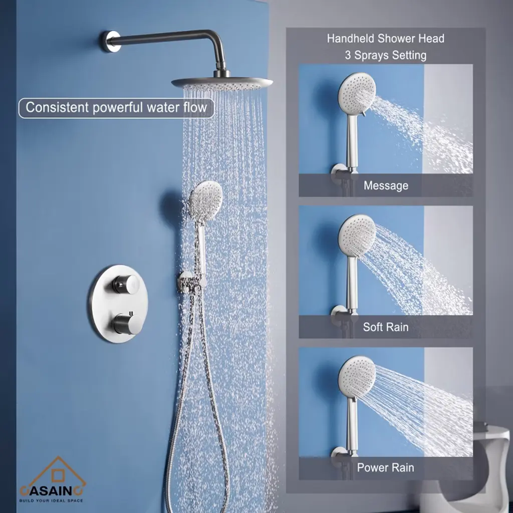 Casainc 3-spray Patterns 9.5 In. Wall Mount Dual Shower Heads In Brushed Nickel (Thermostatic Valve Included)