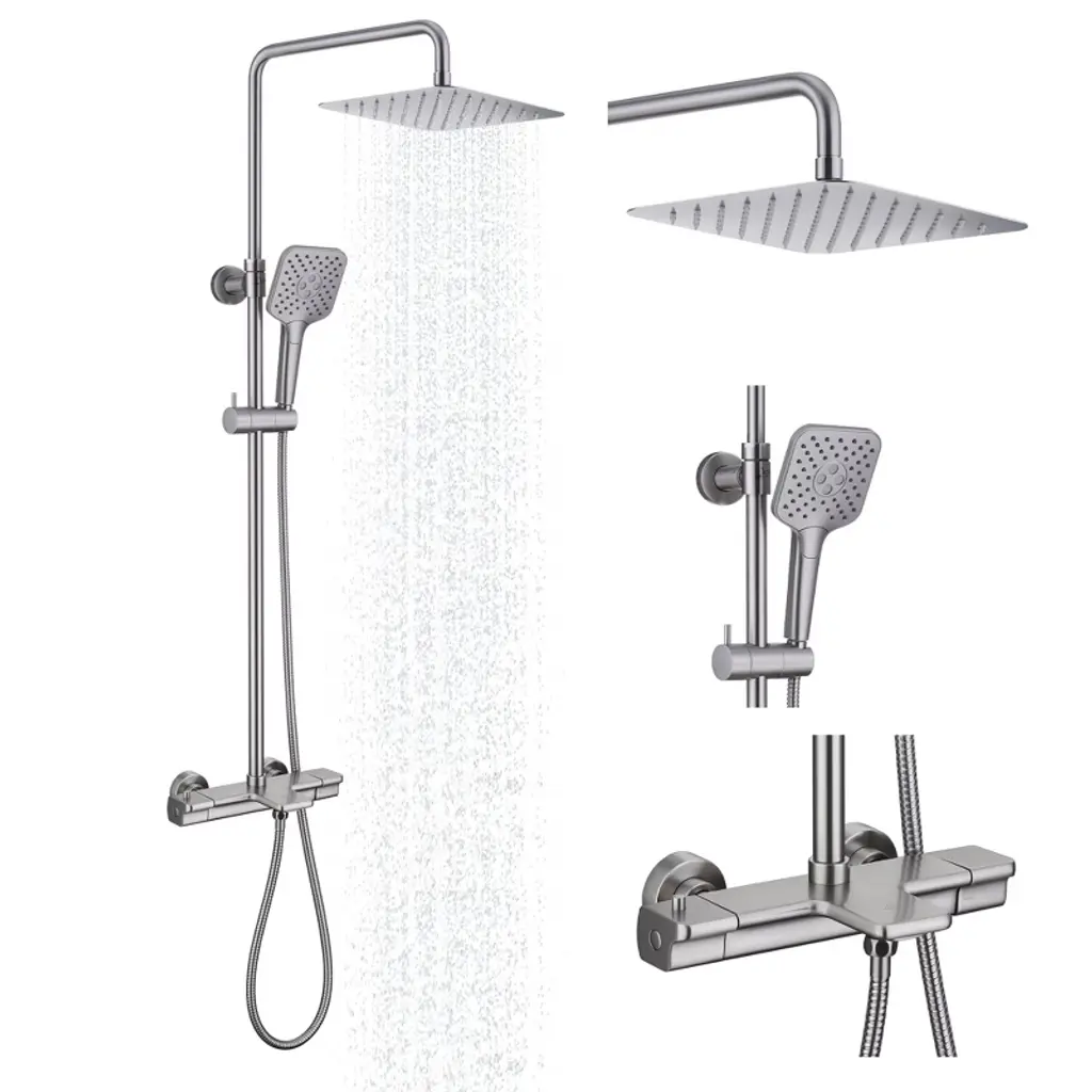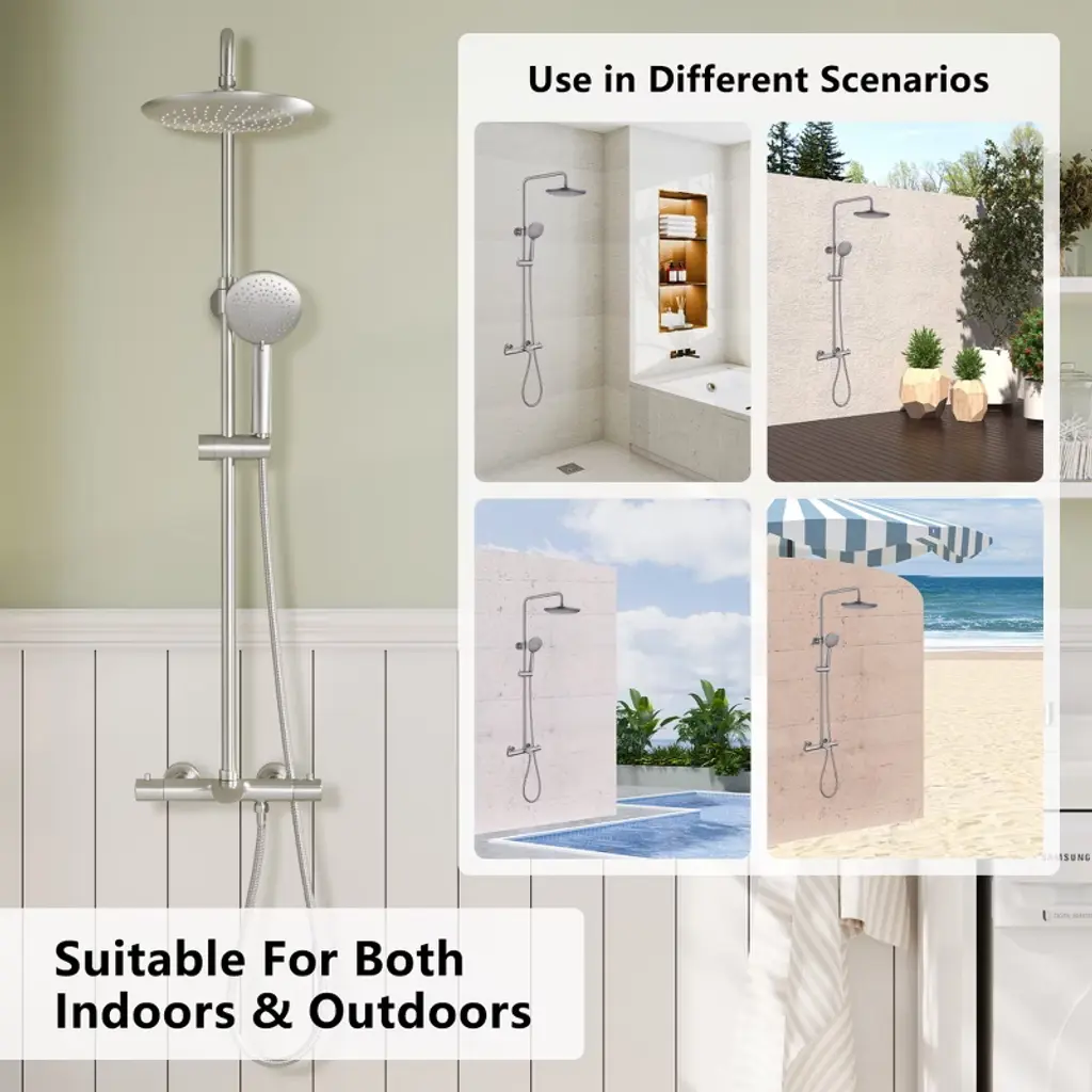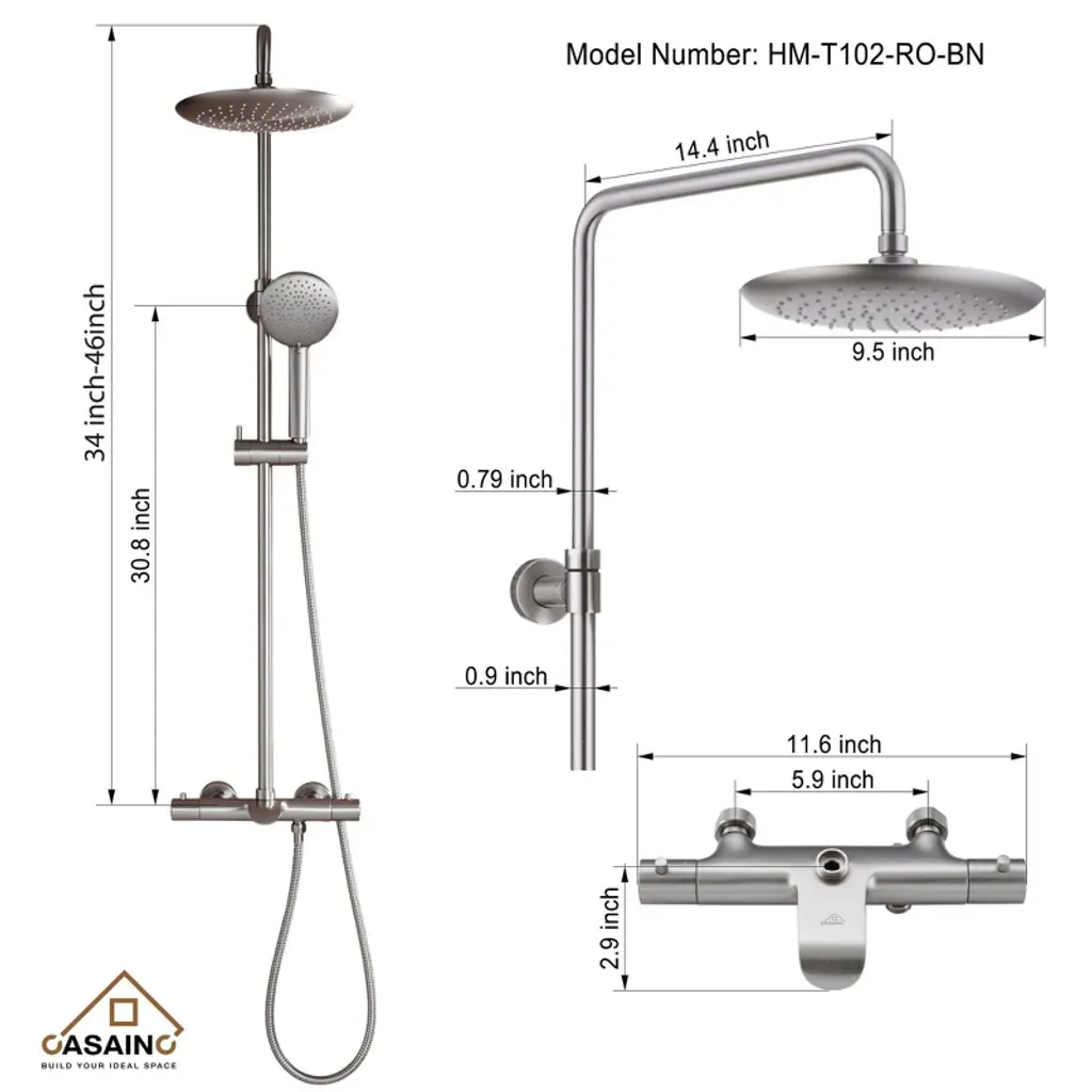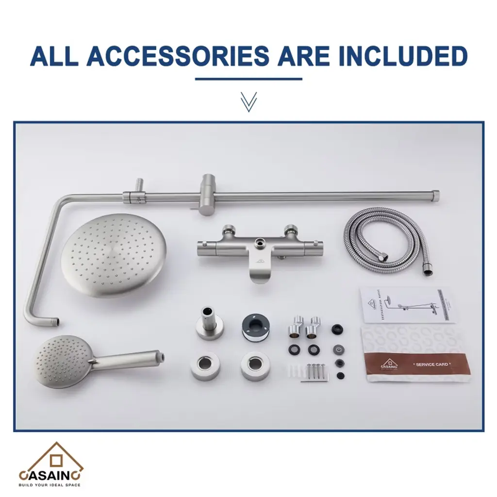 Casainc 5-spray Patterns 9.5 In. Thermostatic Shower Faucet Wall Mount Dual Shower Heads And Tub Faucet In Brushed Nickel