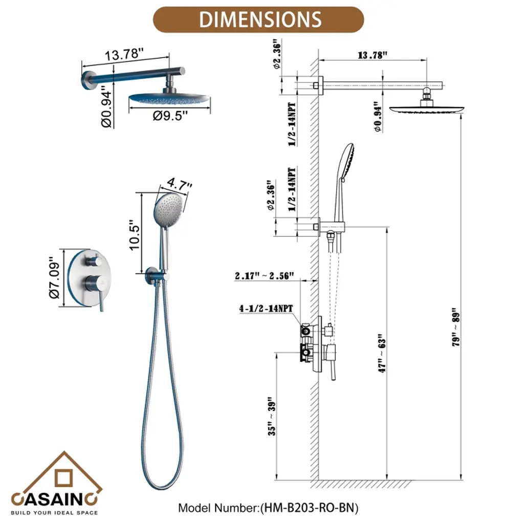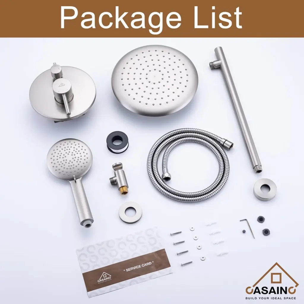 Casainc 5-spray Patterns 9.5 In. Wall Mount Dual Shower Heads In Spot Resist Brushed Nickel