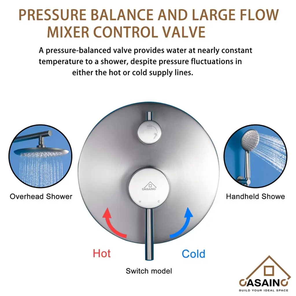 Elevate your daily routine with this modern luxury shower system designed to transform any bathroom into a spa-like retreat. Featuring a sleek, minimalist design and crafted from durable, corrosion-resistant materials and quality parts, this shower system offers both performance and style. Ideal for both renovations and new construction, it fits most U.S. plumbing standards for effortless installation. Perfect for those who value clean design and dependable functionality.