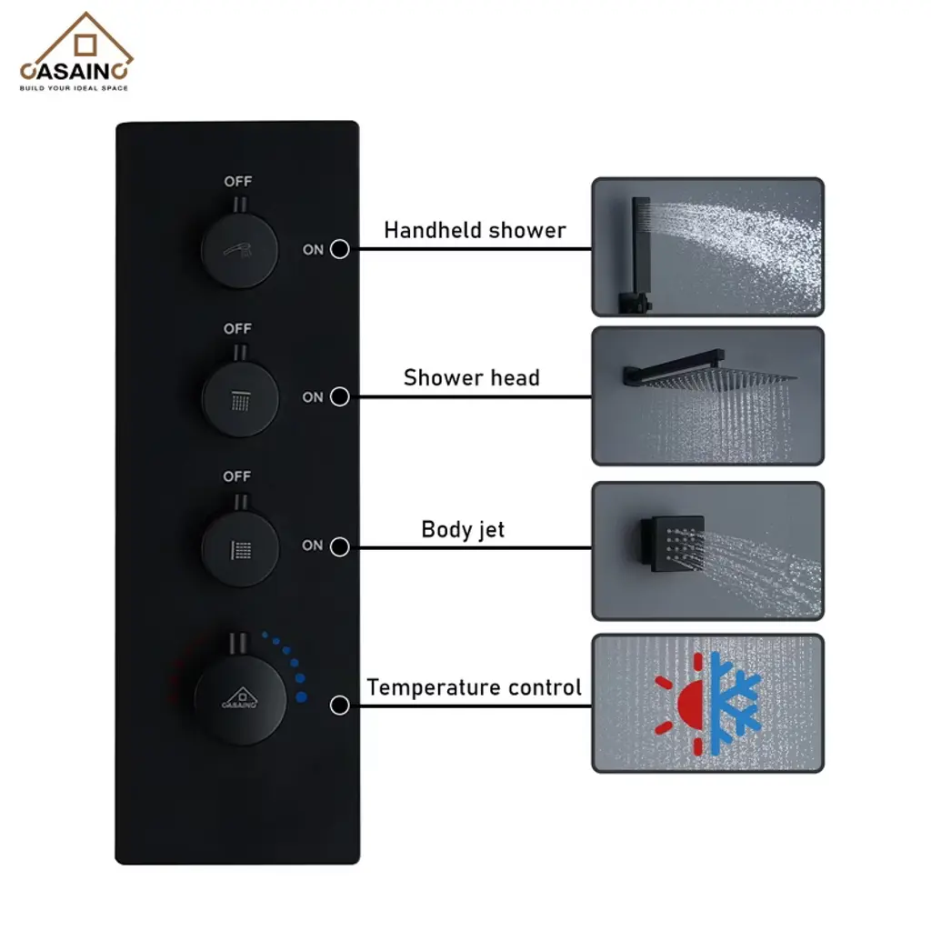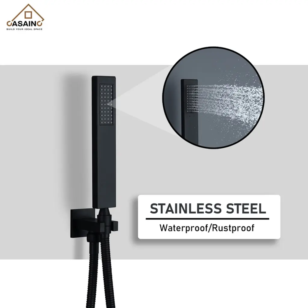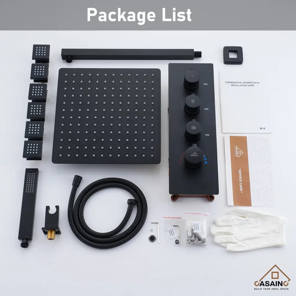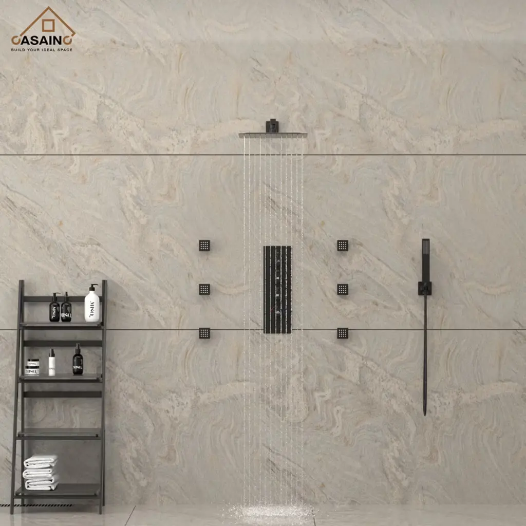 Casainc 6-spray Patterns 12 In. Wall Mounted Rainfall Shower Faucet And Dual Shower Heads System With 6 Body Jets In Matte Black