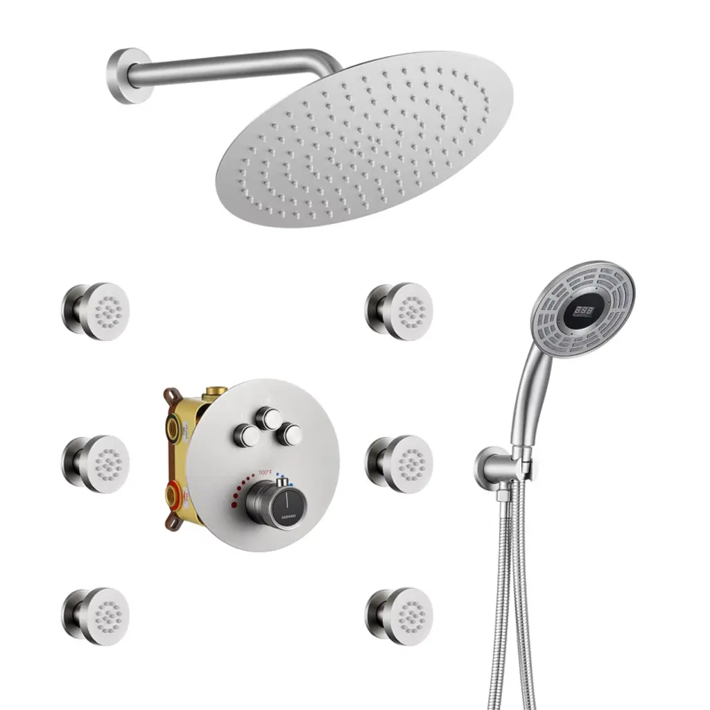 Transform your shower routine with this 3-function digital display thermostatic shower system. Indulge in a truly exceptional showering experience that combines advanced features, stylish design, and unmatched functionality. Made with high-quality materials, multi-functional design.