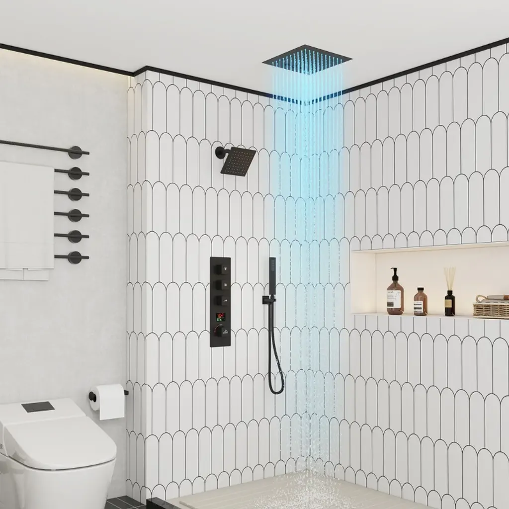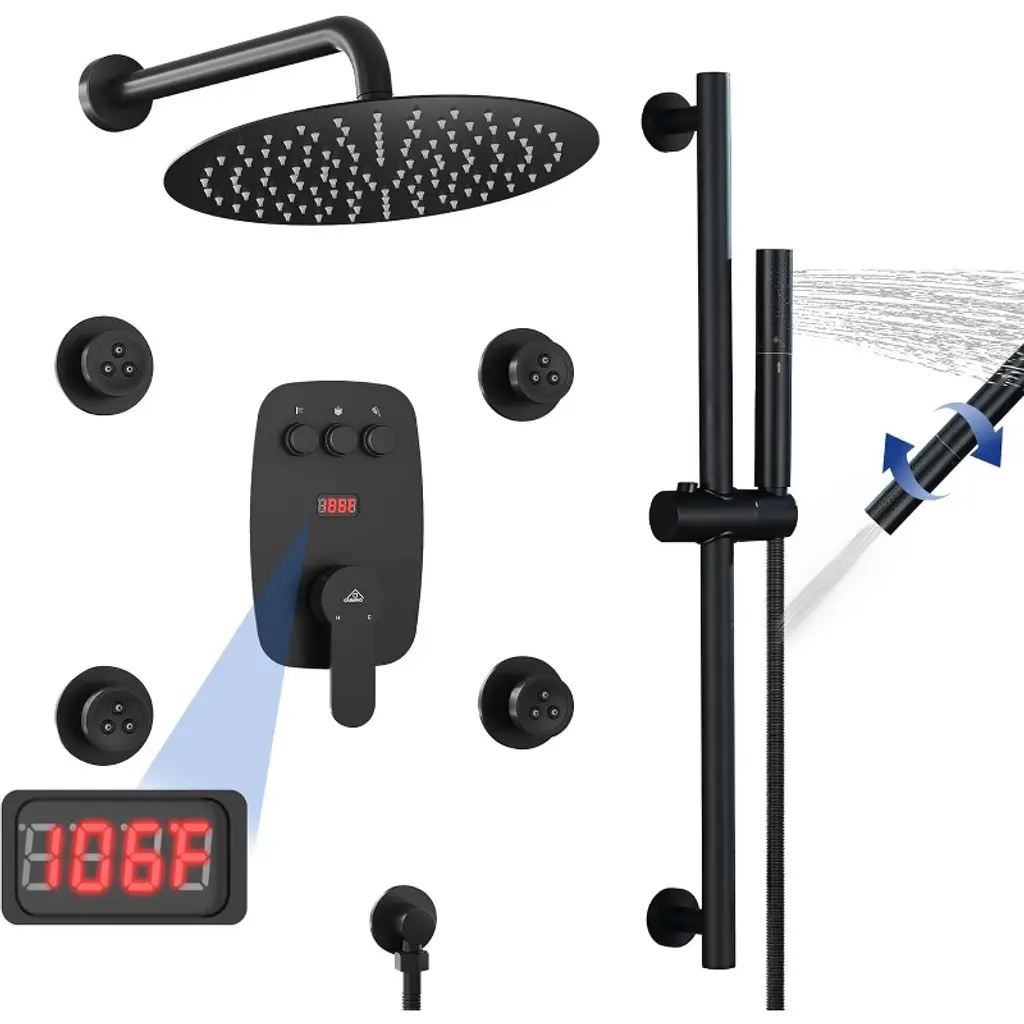 Transform your shower routine with this LED 3-function digital display thermostatic shower system. Immerse yourself in the perfect combination of functionality, style, and innovation. Enjoy the options of rainfall, handheld shower, or top spray, along with the vibrant colors of the LED display.