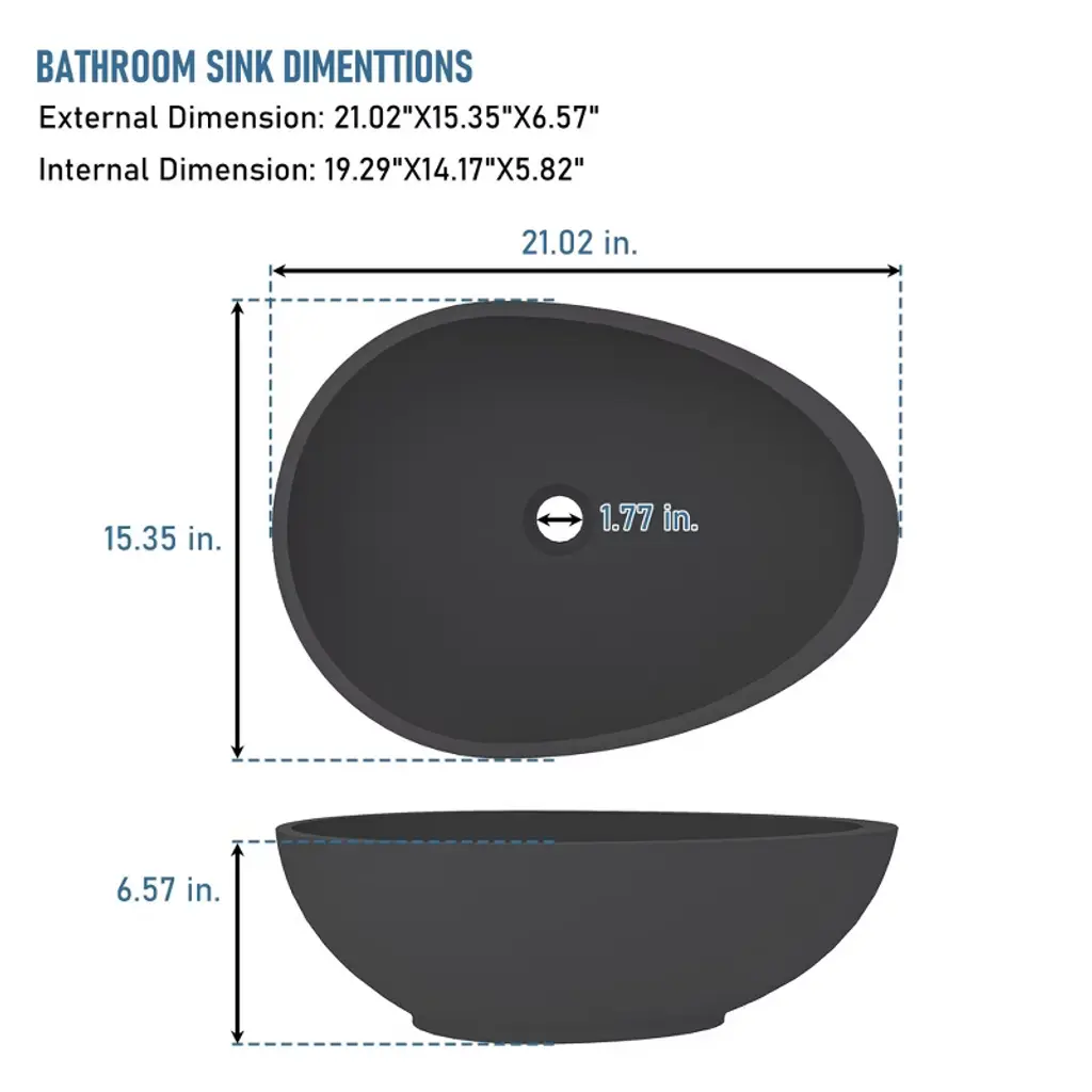 Casainc Egg-shaped Concrete Bathroom Vessel Sink With Pop-up Drainer, Black Earth