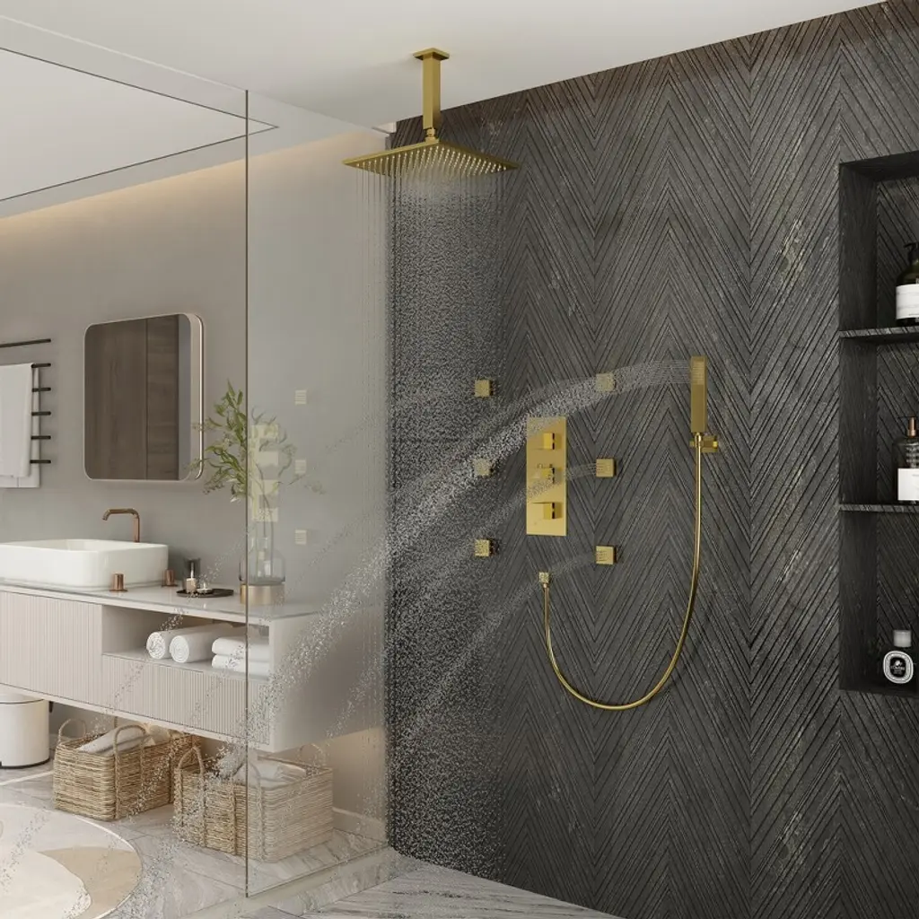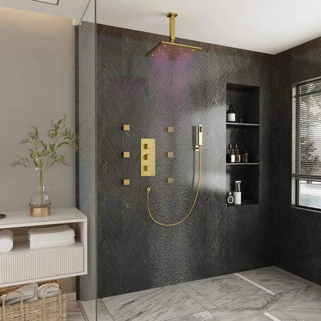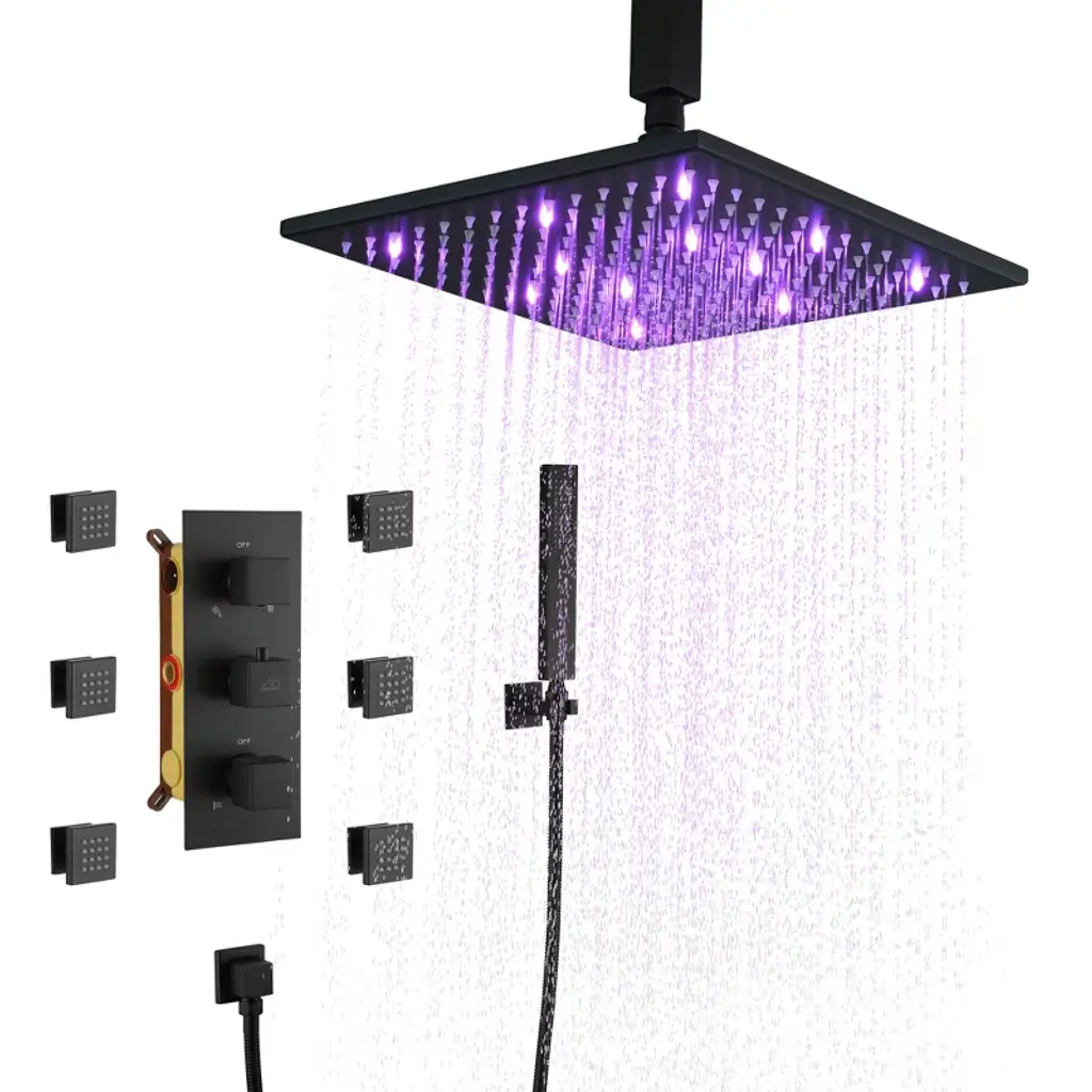 Casainc Led Thermostatic Dual Shower Heads Ceiling Mount Fixed And Handheld Shower Head