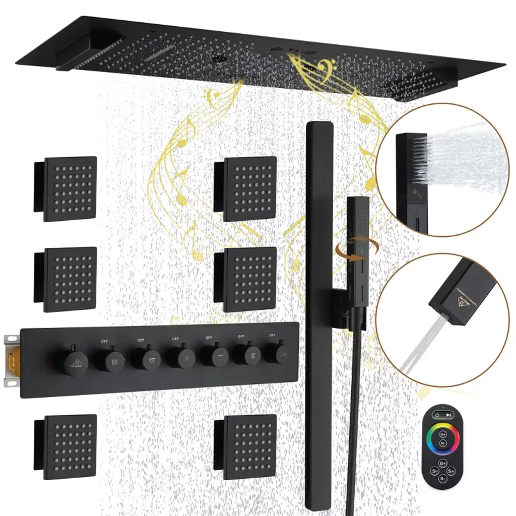 Transform your shower routine with this LED 3-function digital display thermostatic shower system. Immerse yourself in the perfect combination of functionality, style, and innovation. Enjoy the options of rainfall, handheld shower, or top spray, along with the vibrant colors of the LED display.