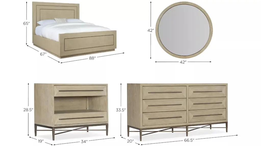 Infuse your master suite with calm and tranquility with the Cascade Panel Bedroom Set, featuring a sophisticated contrast of materials. Crafted of Oak Veneers in a soft taupe finish with dry brushing, this statement bed is accented with champagne-colored metal inlays for an alluring sparkle. Includes the headboard, footboard and rails.