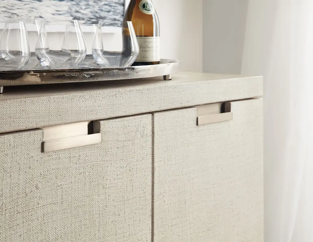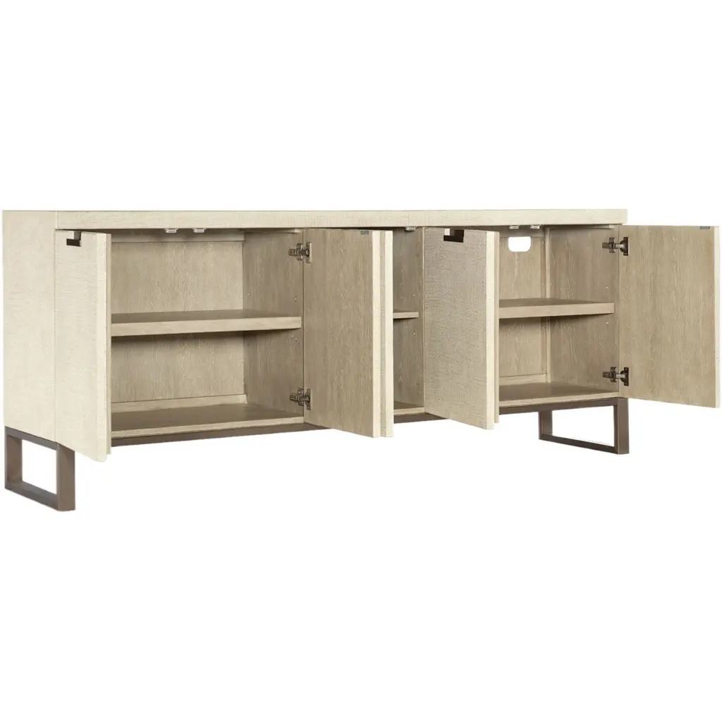 Create a calm and tranquil atmosphere of hospitality with the sleek and sophisticated silhouette of the Cascade Server. This 5-door server is brimming with storage and features a soothing color palette. It is accented by a metal base and recessed pulls. There’s one adjustable shelf behind the left and right pair of doors and one adjustable shelf behind the center door.