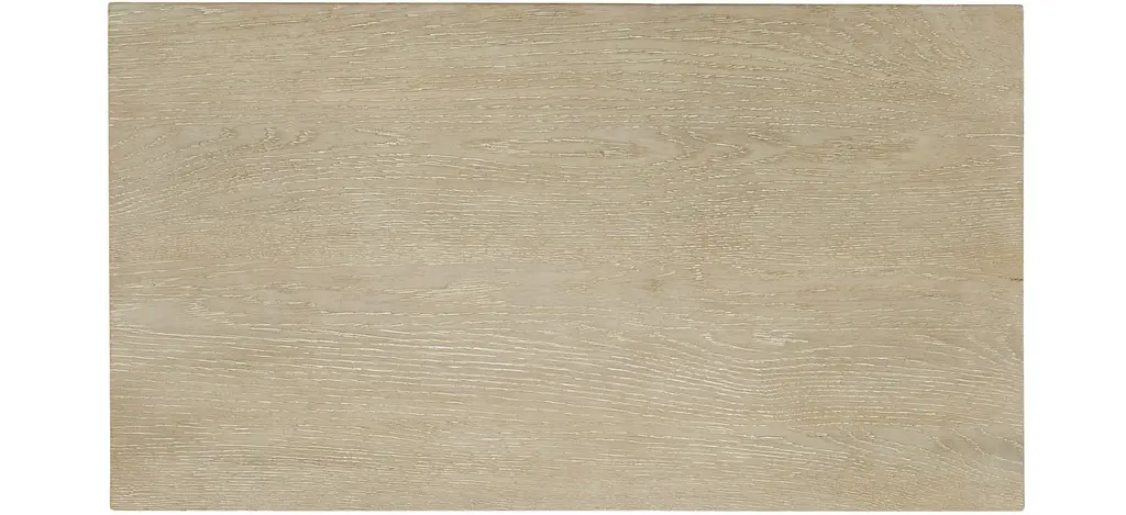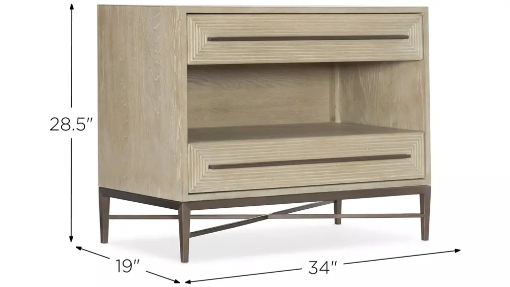 With an open and airy profile, the Cascade Two-Drawer Nightstand offers chic style and a calming neutral color palette to your space. Crafted of Oak Veneers, it is finished in Terrain, a soft taupe color made casual and tactile by dry brushing. The finishing touches are a champagne-colored bar pull and a center open storage area. Functional features include a USB outlet and a cord clip on the back.