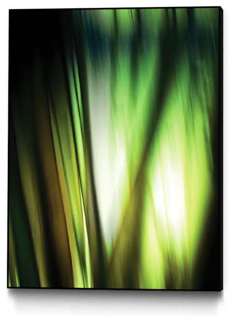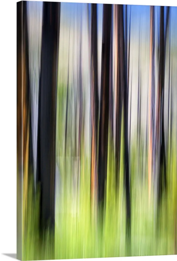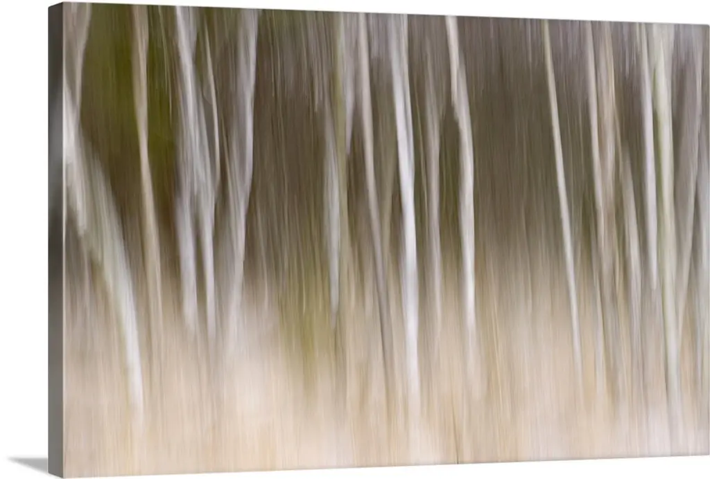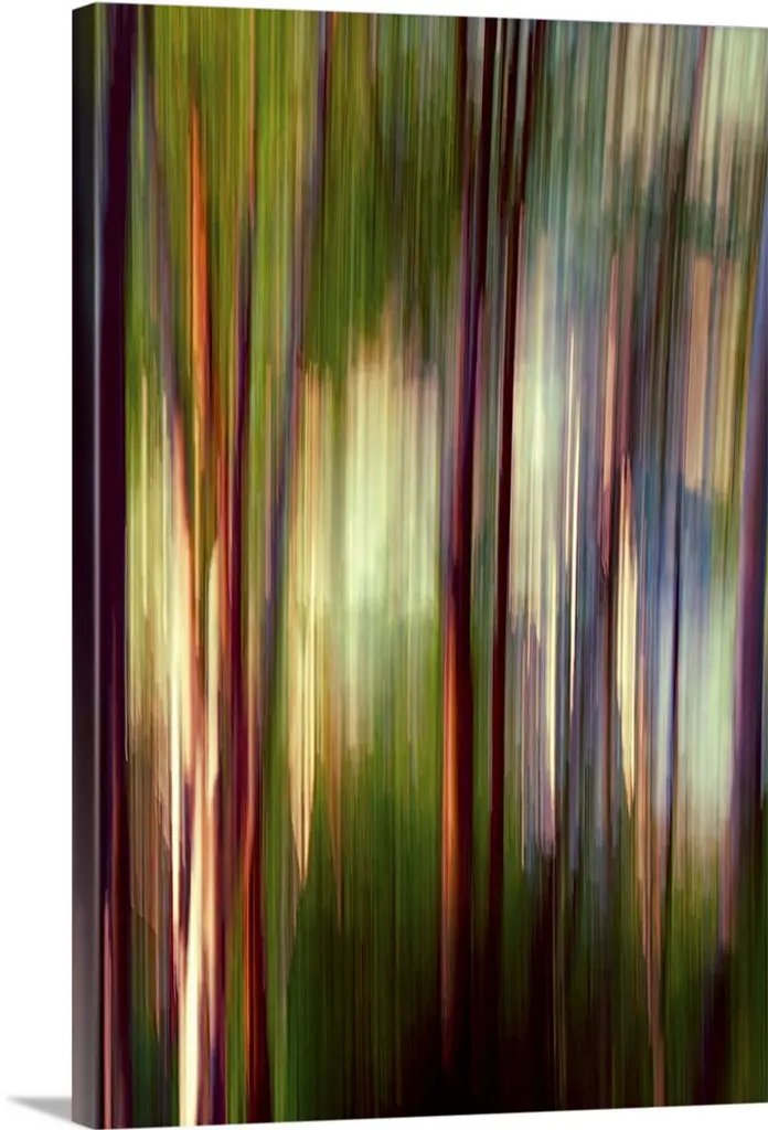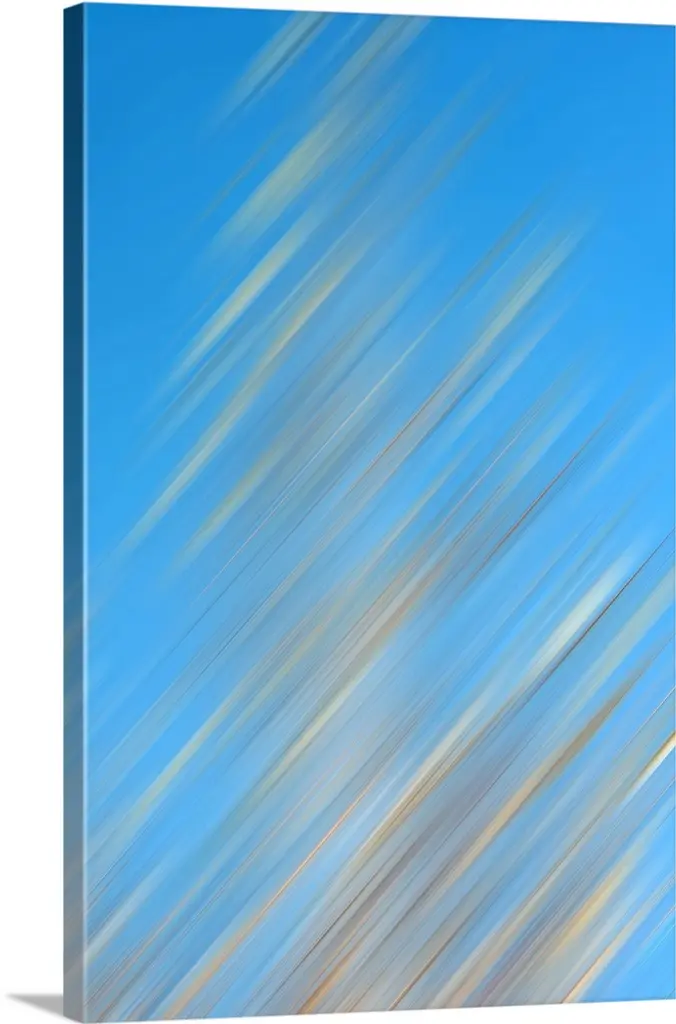 Abstract photograph of a blurred waterfall with brown, green, blue, and white hues.