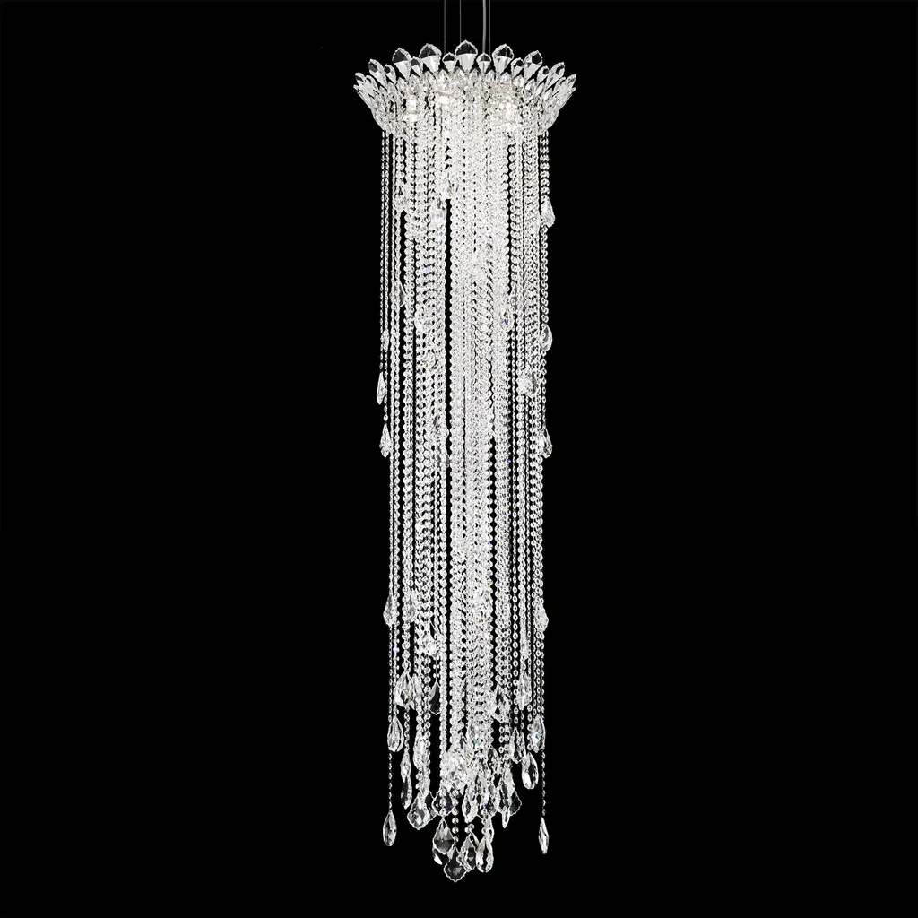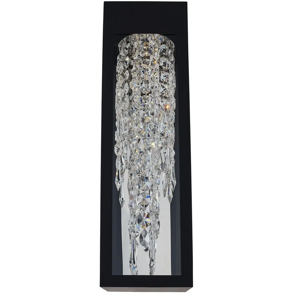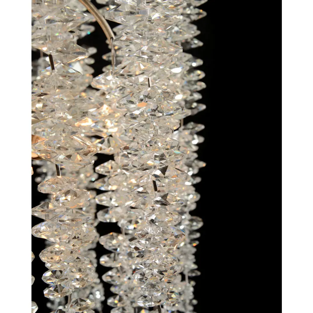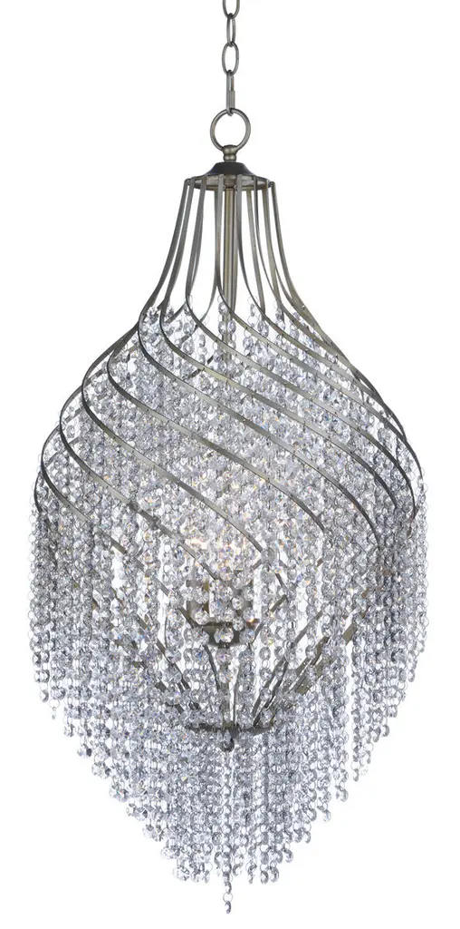 A cascading crystal waterfall six-light semiflush in antique silver leaf. Candelabra Base, 40 Watt Max, 6 Type B Bulbs, Canopy: 5" Flush Mount