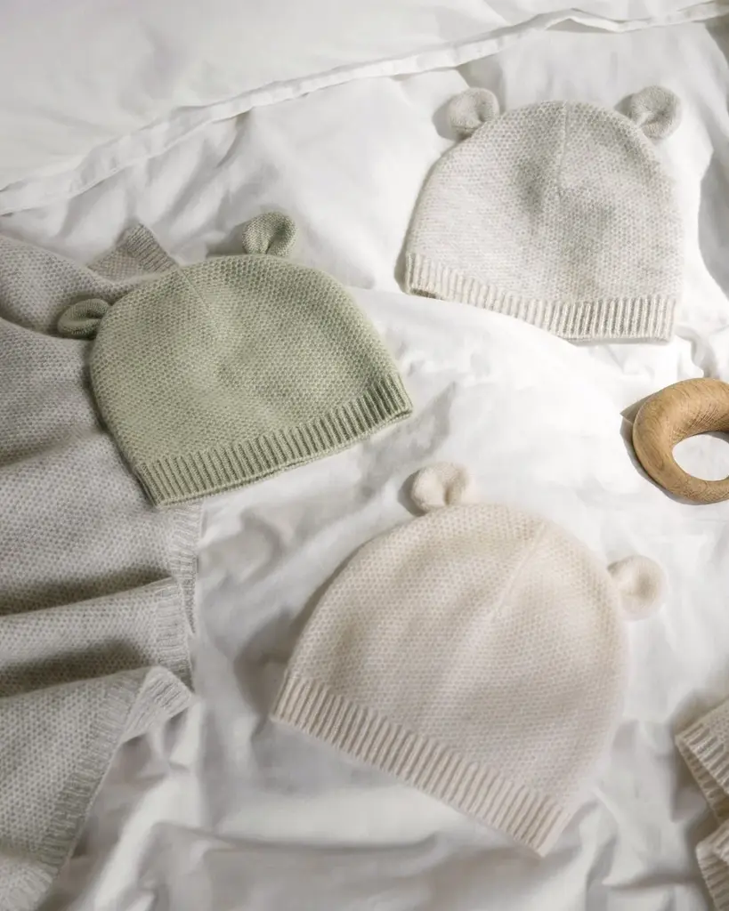 For the adorable cub on your list, this pure cashmere hat is as cozy as it is cute. Softly knit in a delicate honeycomb stitch and topped with playful bear ears, it pairs perfectly with our Cashmere Baby Blanket for a gift thats both practical and precious.