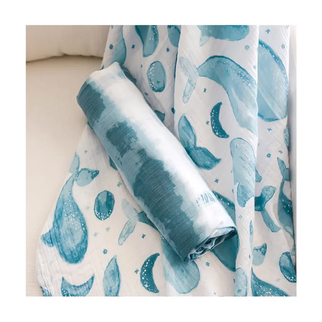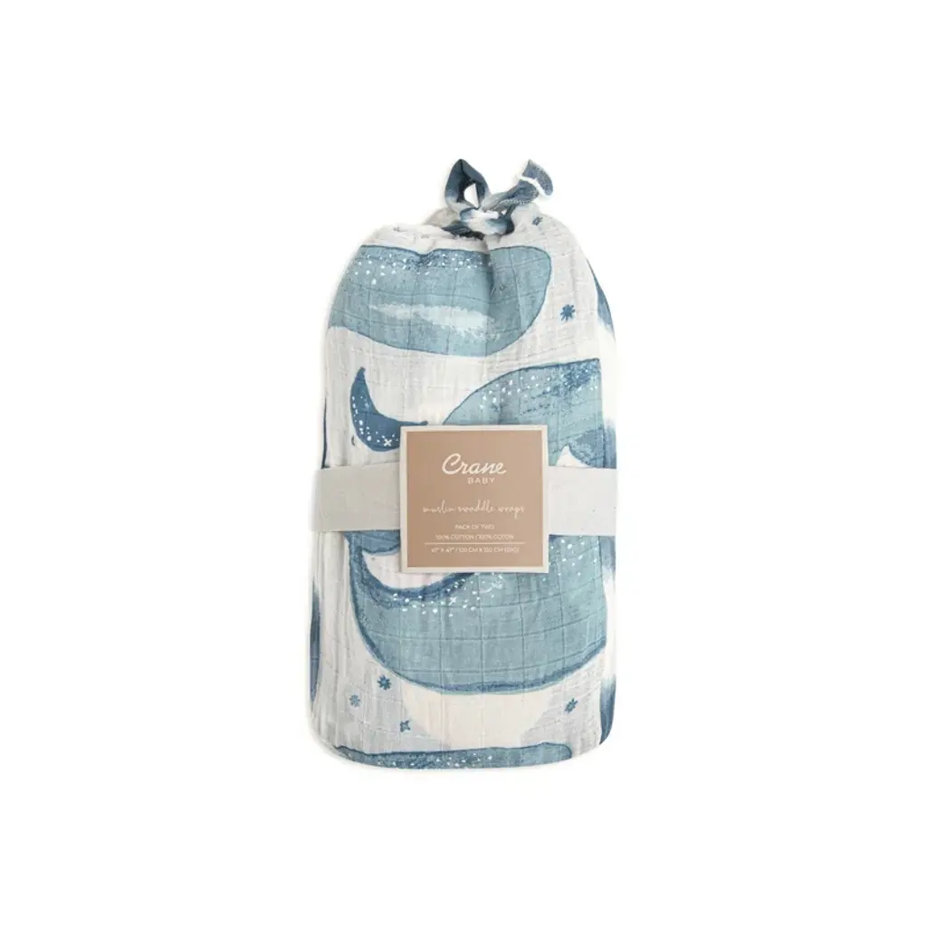 Caspian 2-Pack 100% Cotton Swaddle, Whale Pattern By Crane Baby