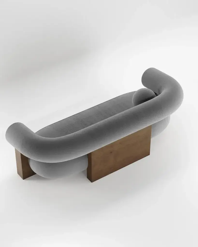 Cassete Sofa In Boucle Light Grey And Smoked Oak By Alter Ego For Collector