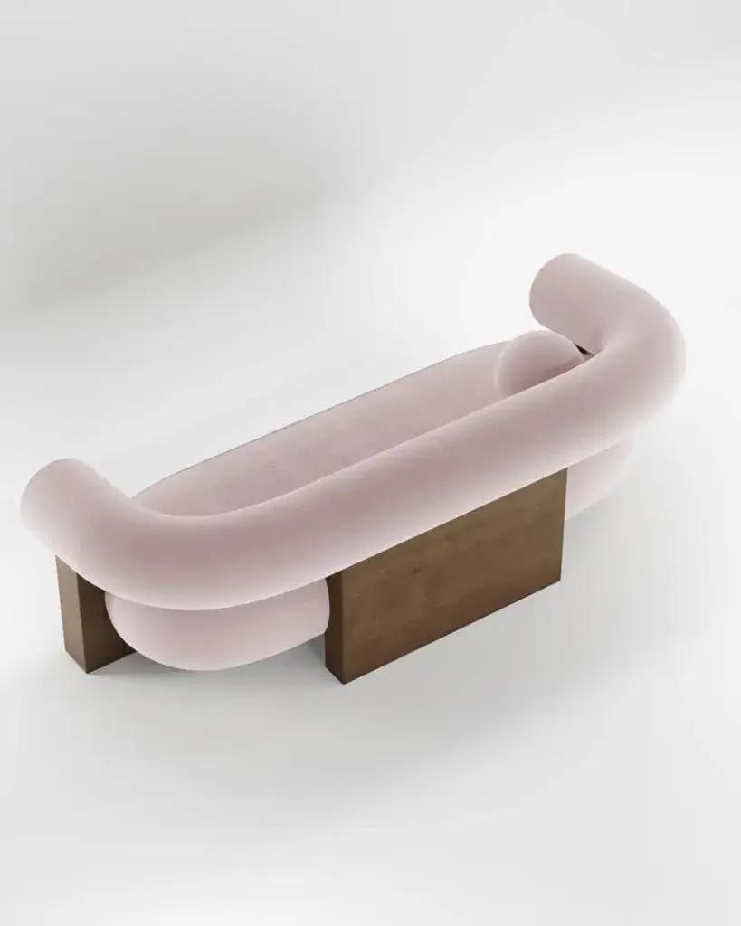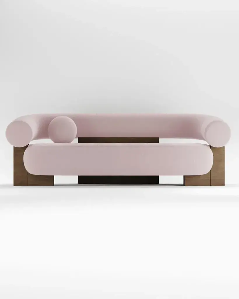 Cassete Sofa In Boucle Rose And Smoked Oak By Alter Ego For Collector